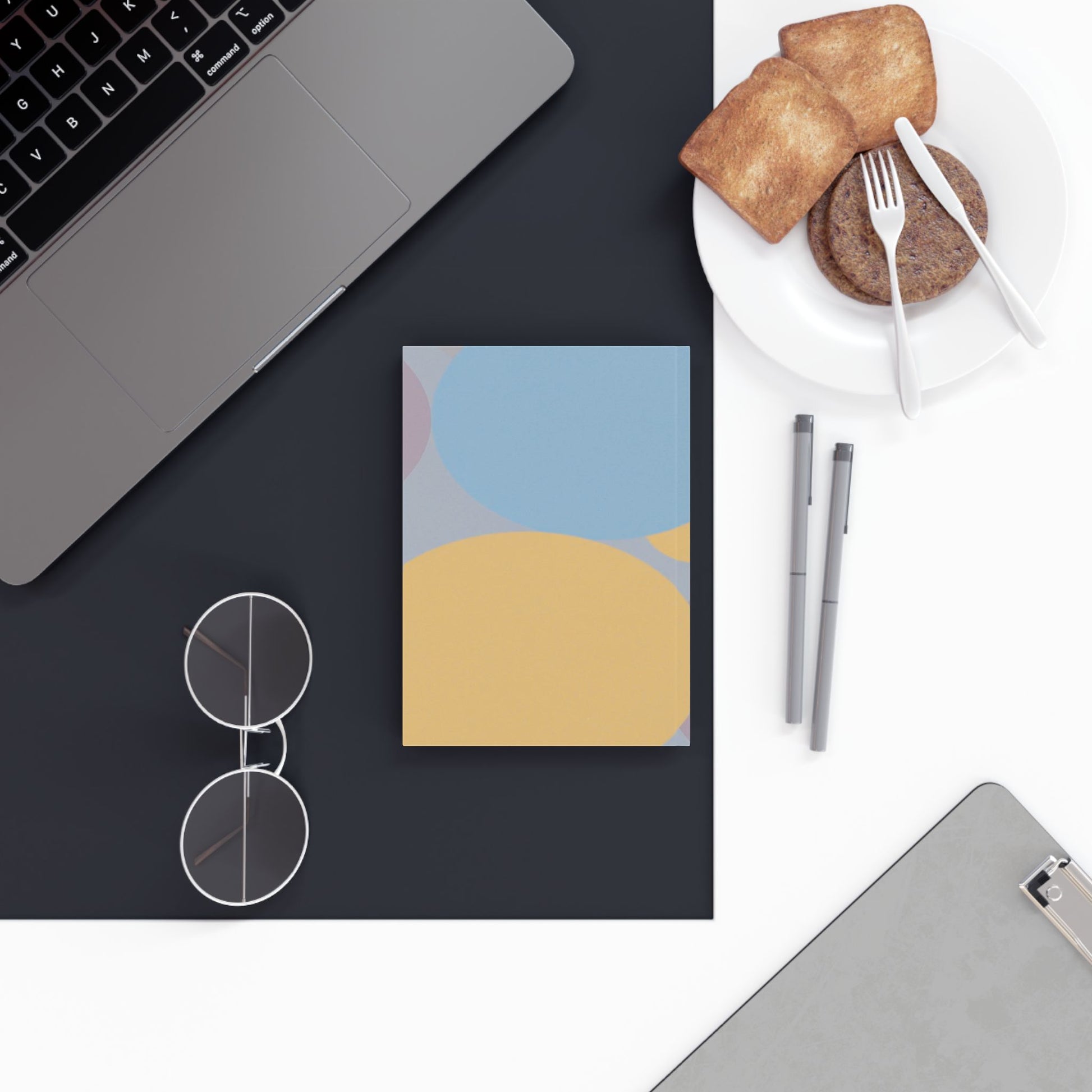 Pastel Baby Blue and Peach Patches 5.2" x 7.4" Hard Backed Journal with 128 blank pages