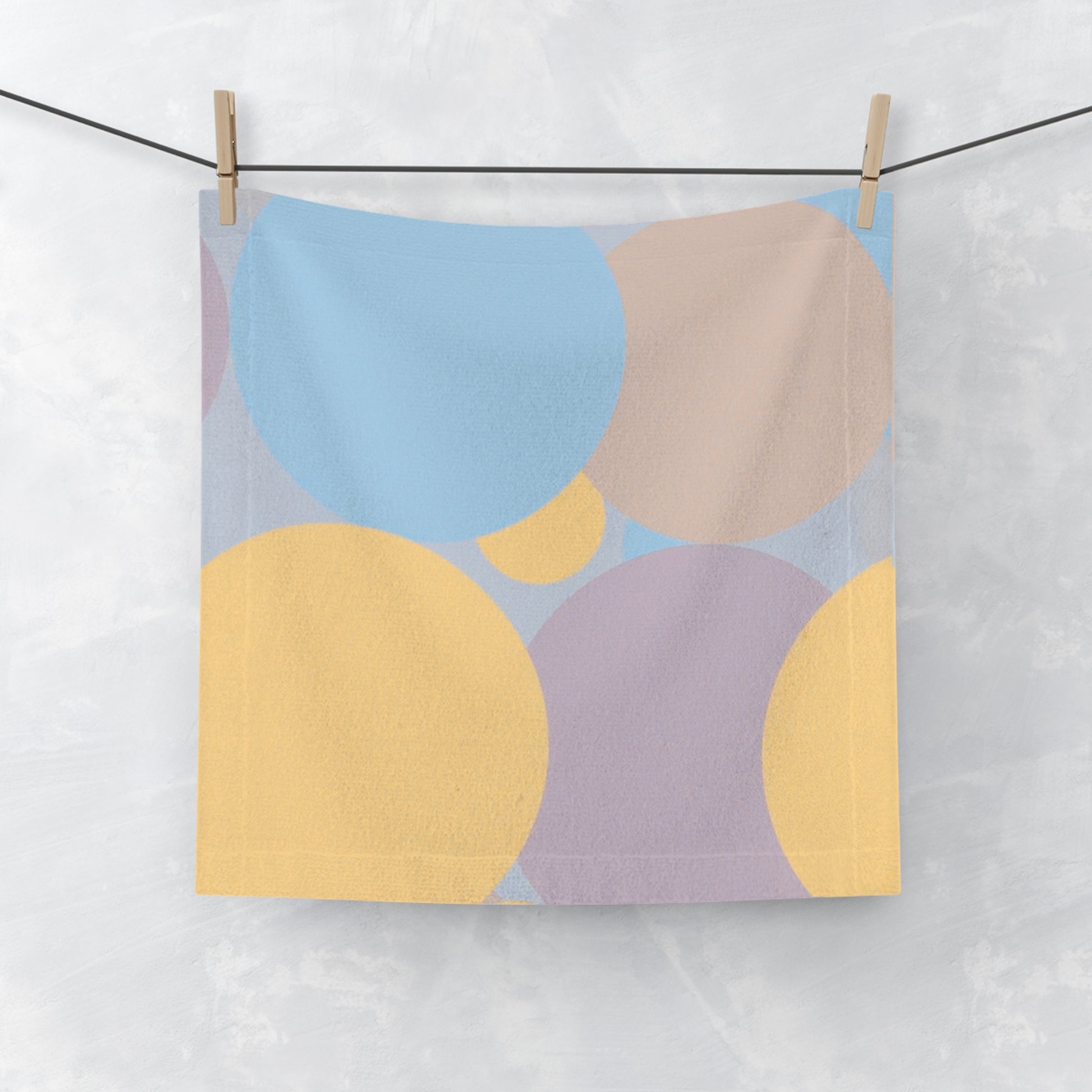 Pastel Baby Blue and Peach Patches Face Towel, 13" x 13"