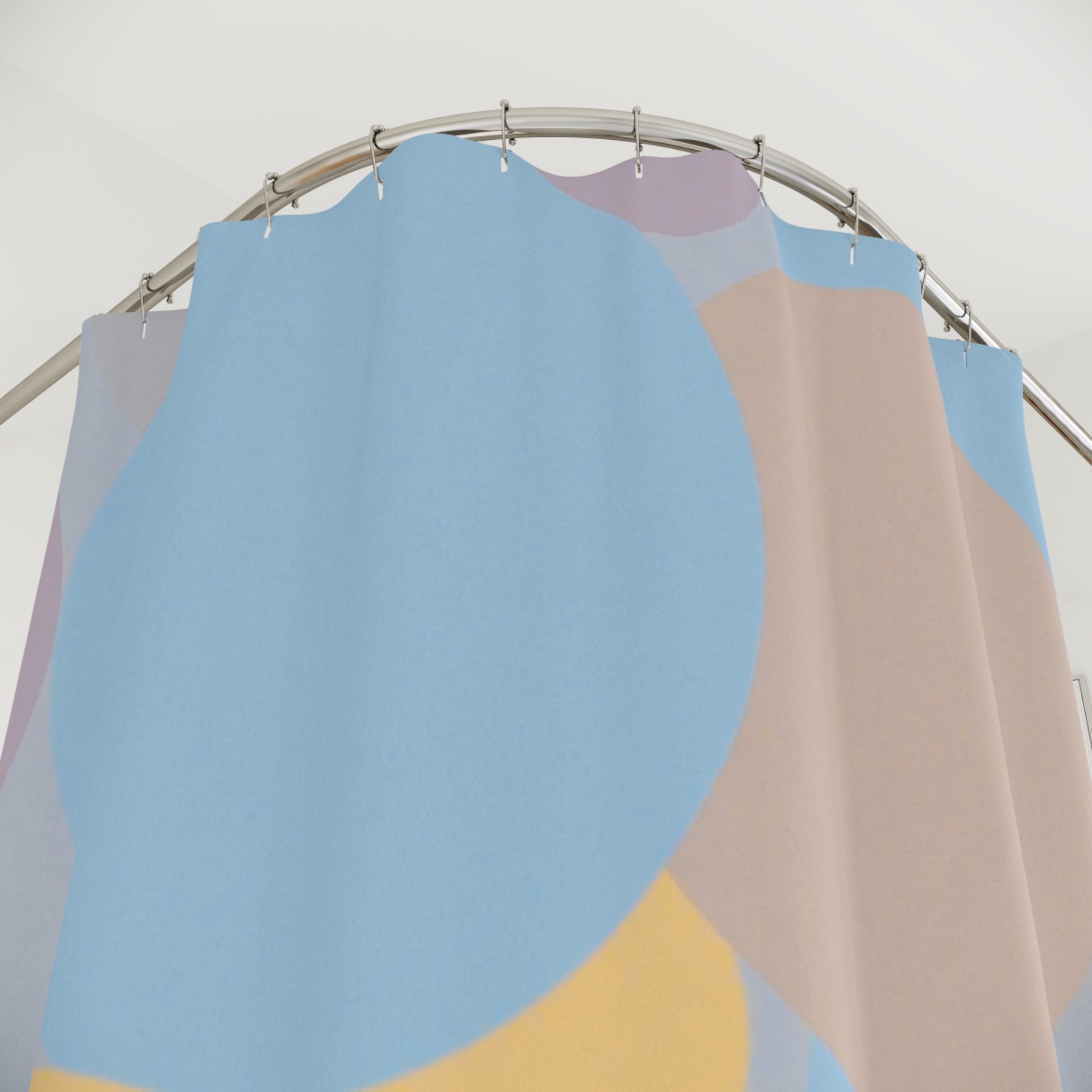 Pastel Baby Blue and Peach Patches Shower Curtains, 71" x 74"