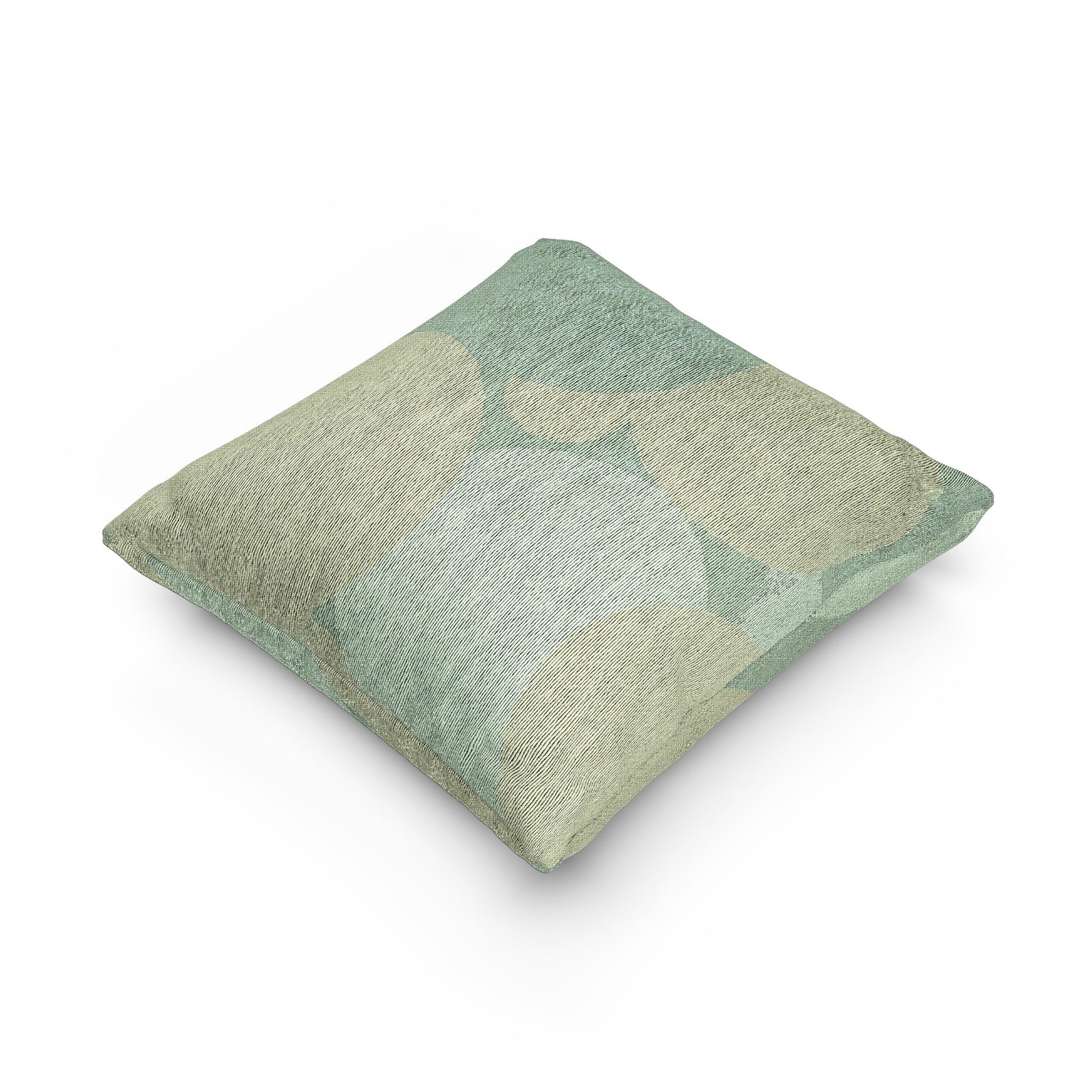 Pastel Blue and Green Patches Woven Pillow, 17" x 18"