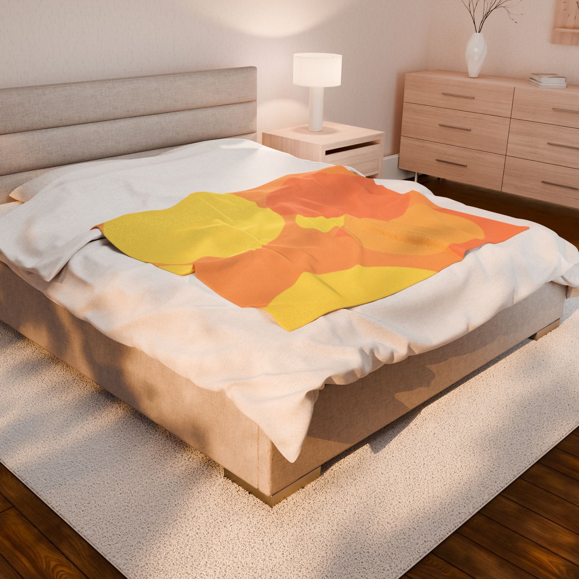 Pastel Bright Oranges Patches Velveteen Plush Blanket, 50" x 60"