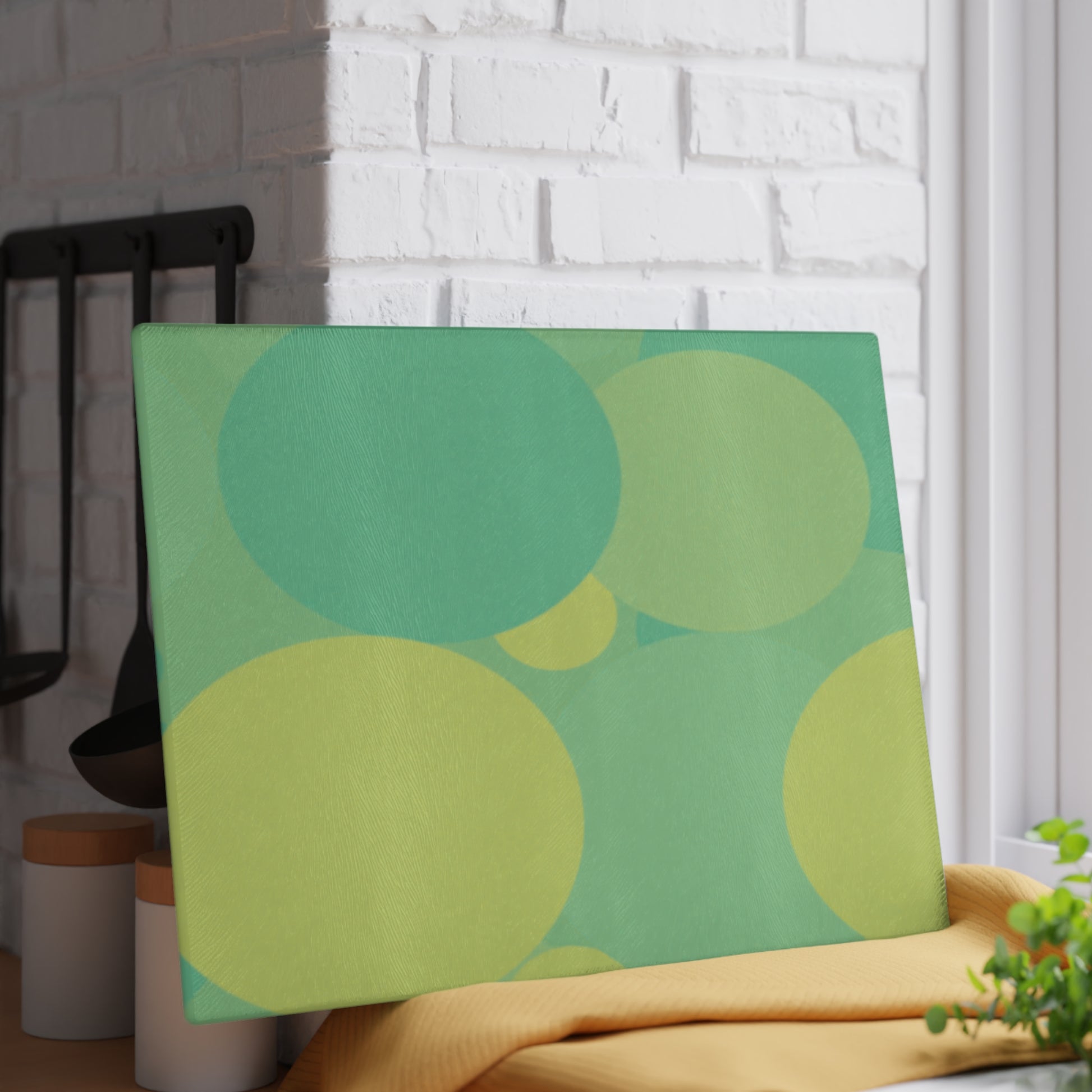Pastel Green Patches 11" x 15" Glass Cutting Board