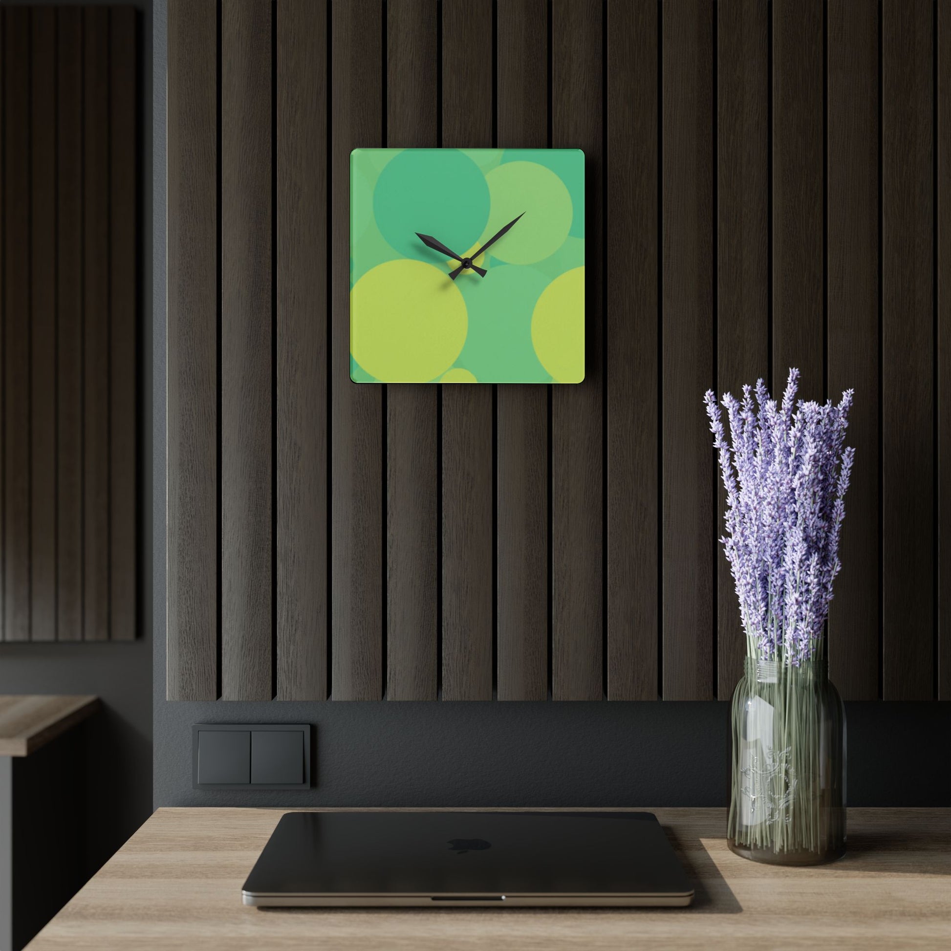 Pastel Green Patches Acrylic Wall Clock, Round or Square, 10.75" x 10.75"