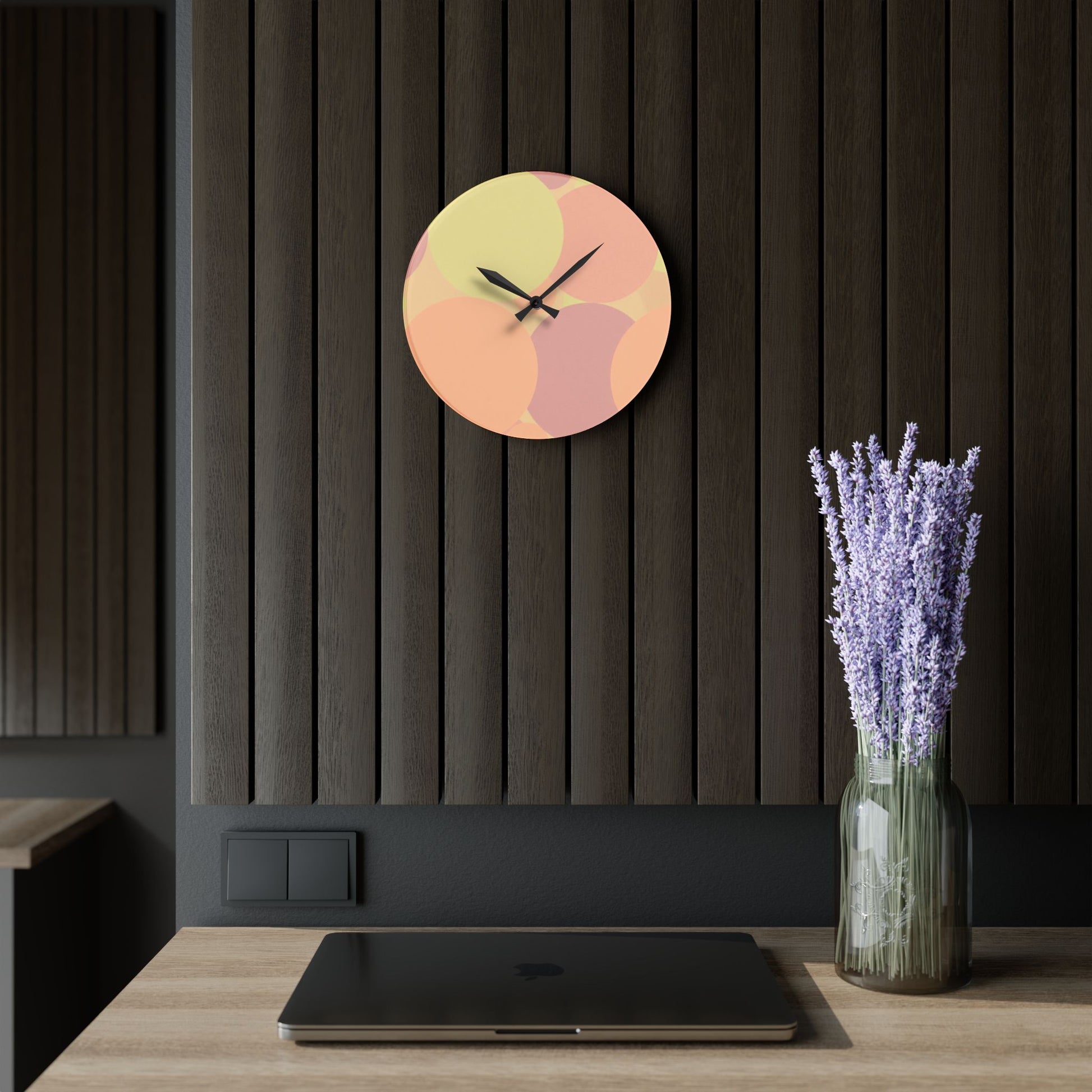 Pastel Hot Peach Patches Acrylic Wall Clock, Round or Square, 10.75" x 10.75"