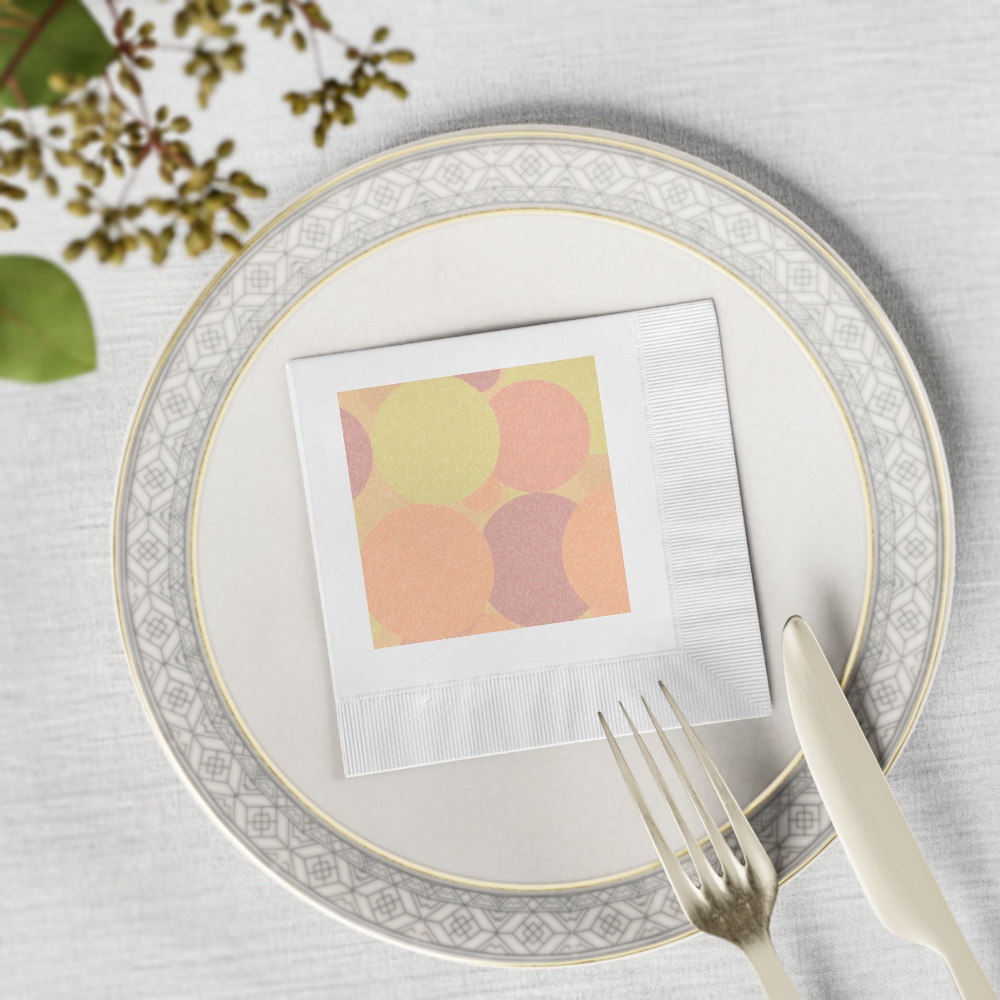 Pastel Hot Peach Patches White Coined Napkins, 4.8" x 4.8"