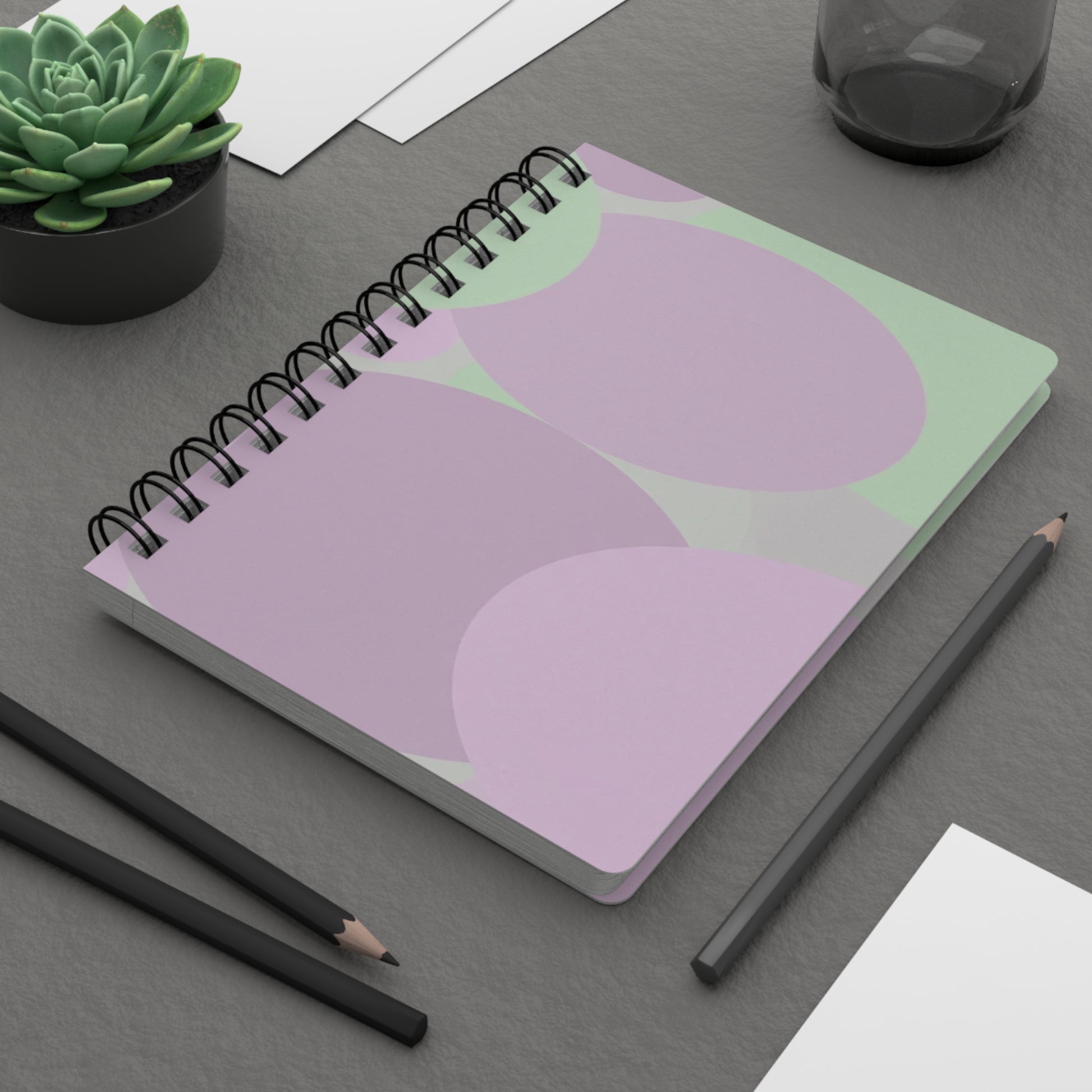 Pastel Lavender Purple and Soft Green Patches Spiral Bound Journal, 5" x 7" 150 pages