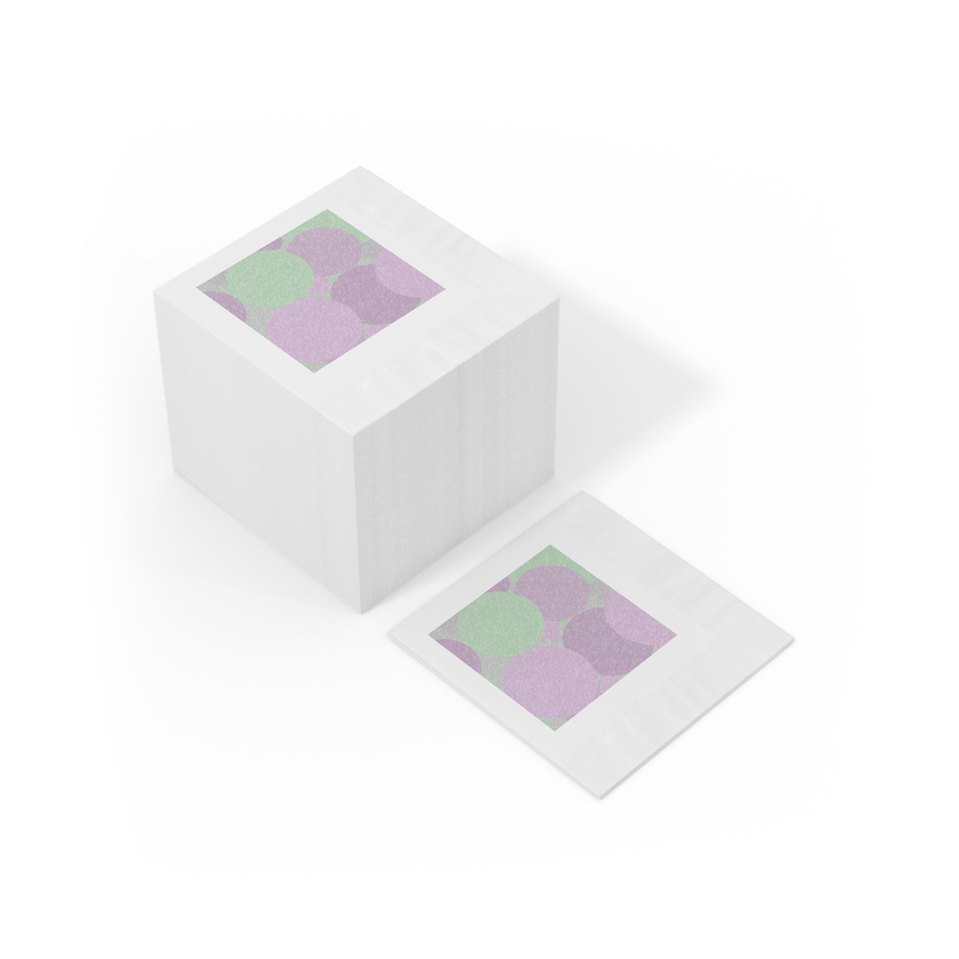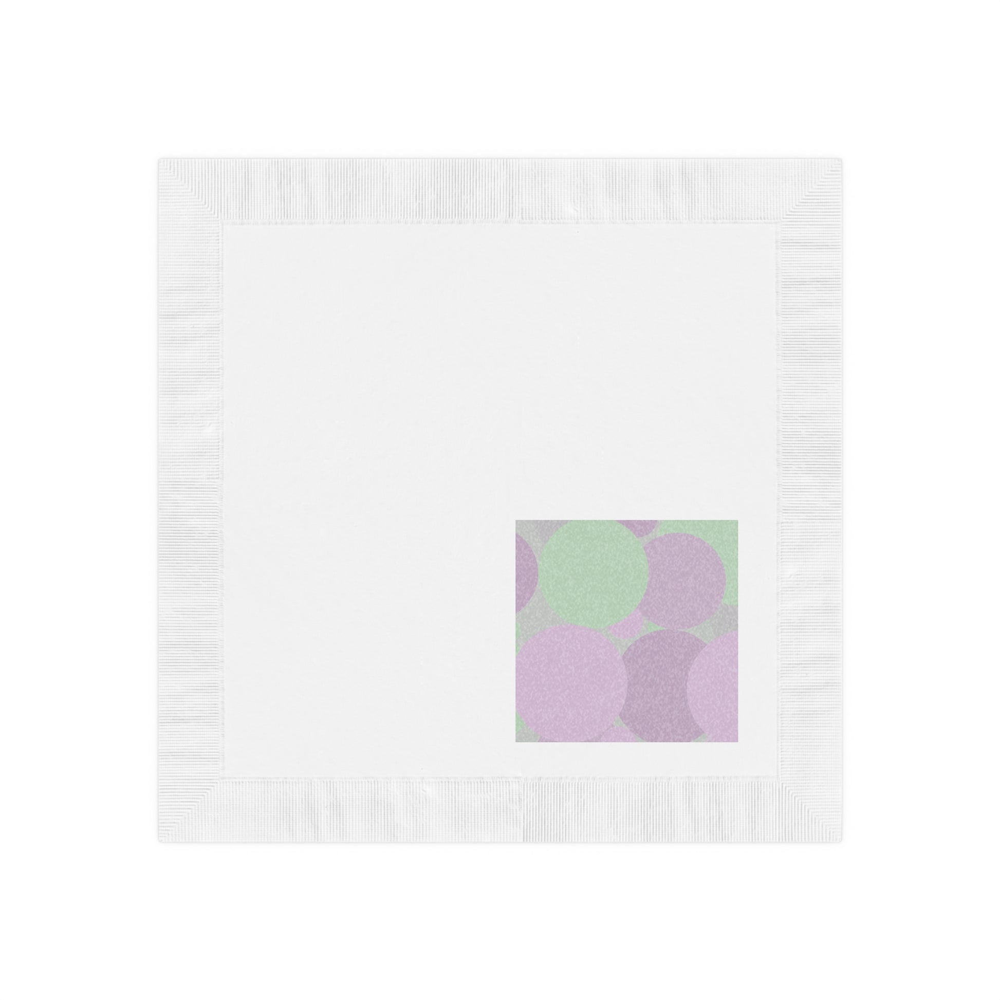 Pastel Lavender Purple and Soft Green Patches White Coined Napkins, 4.8" x 4.8"