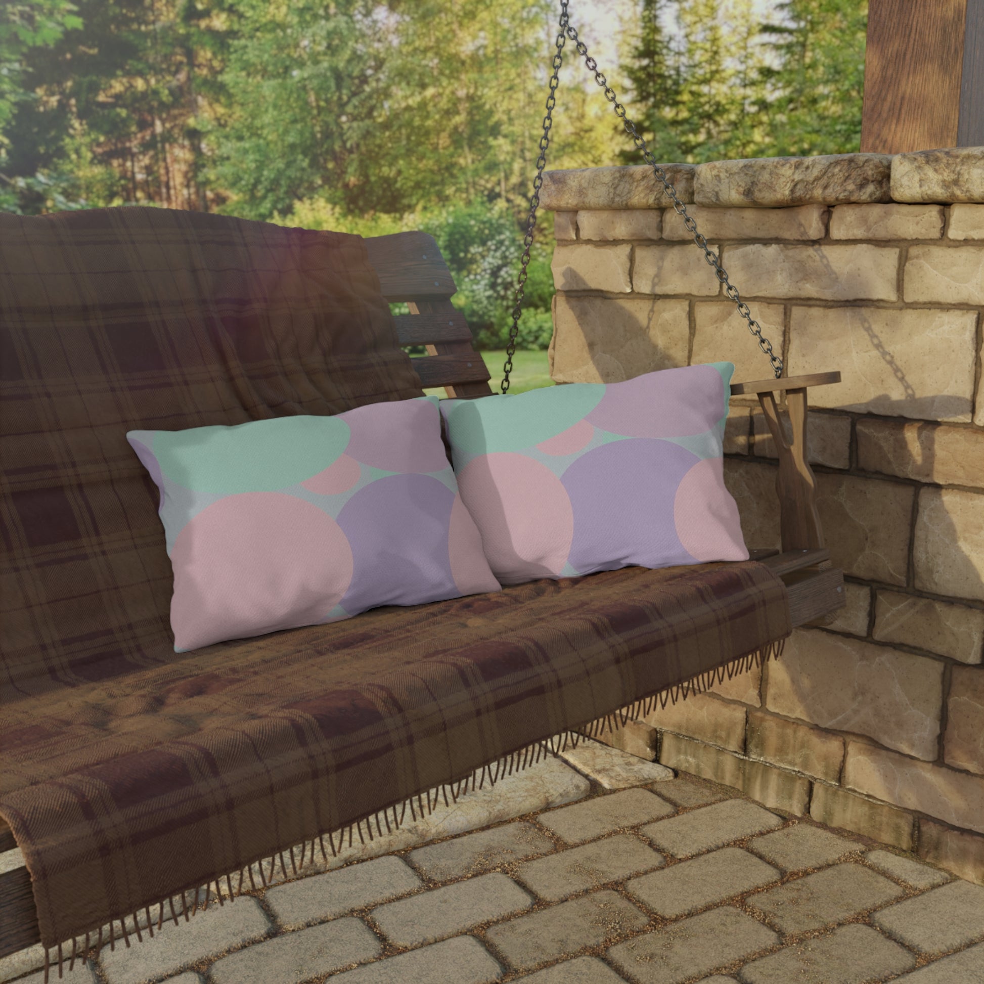 Pastel Peach and Soft Green Patches 20" x 14" Outdoor Pillow