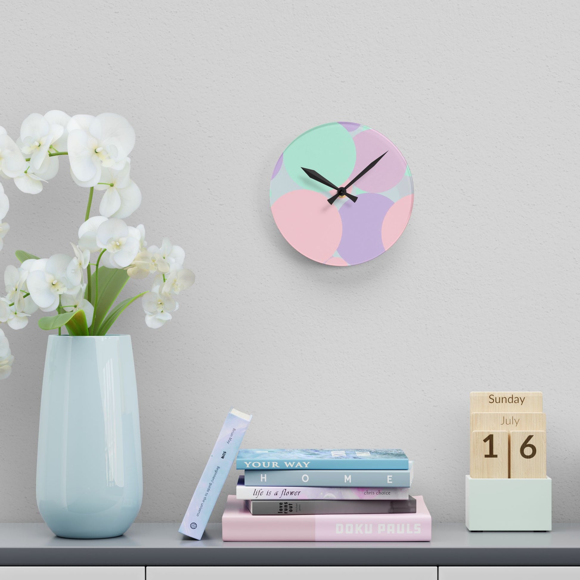 Pastel Peach and Soft Green Patches Acrylic Round Wall Clock, 8" x 8"
