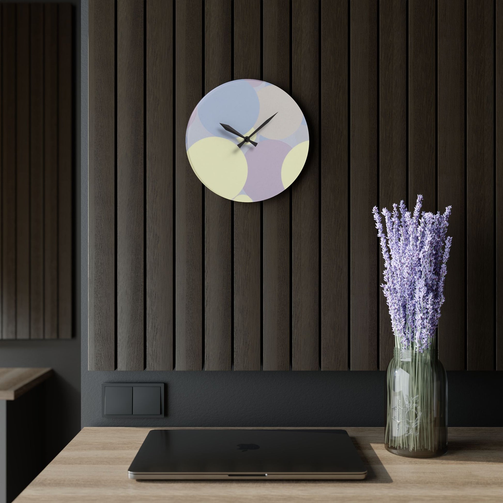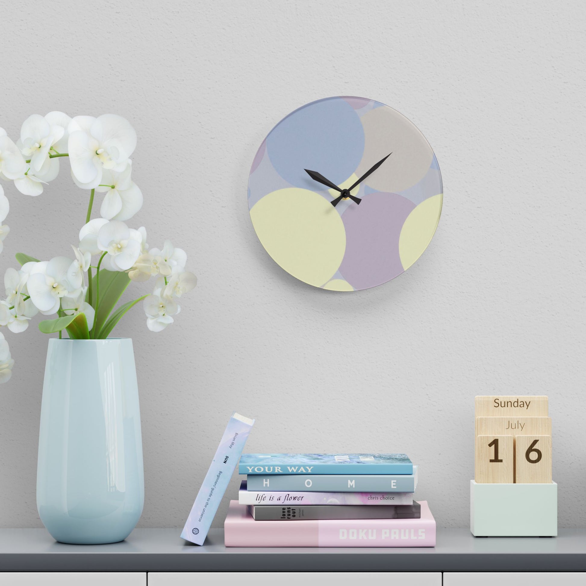 Pastel Soft Blue and Soft White Patches Acrylic Wall Clock, Round or Square, 10.75" x 10.75"