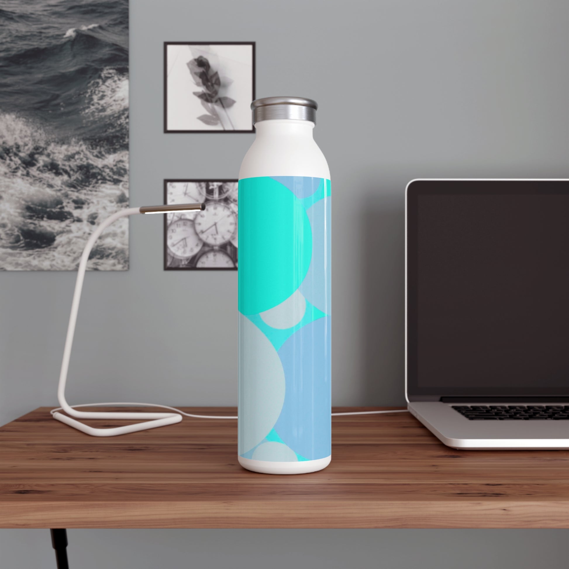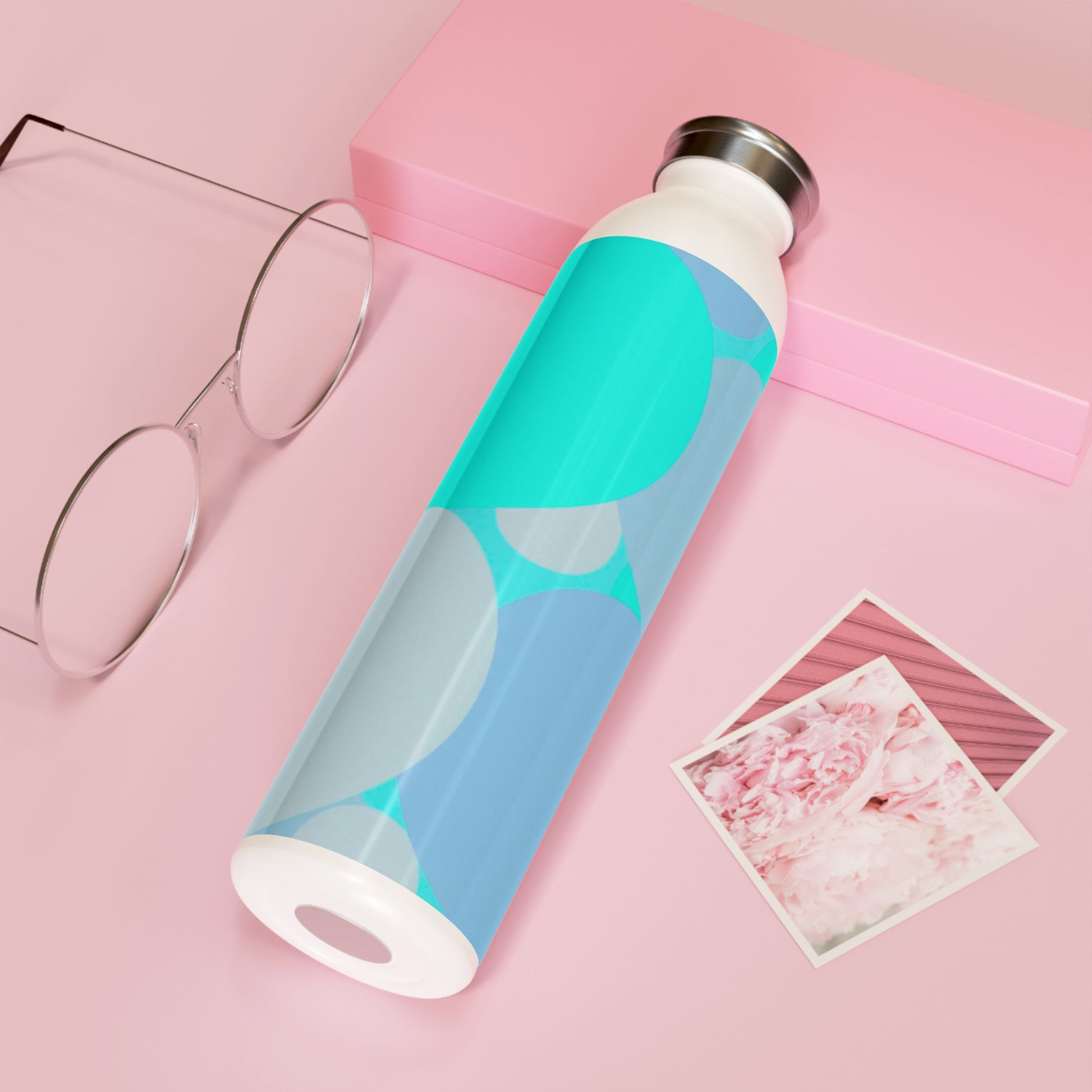 Pastel Tan and Tif Patches Slim Water Bottle, 20 oz White