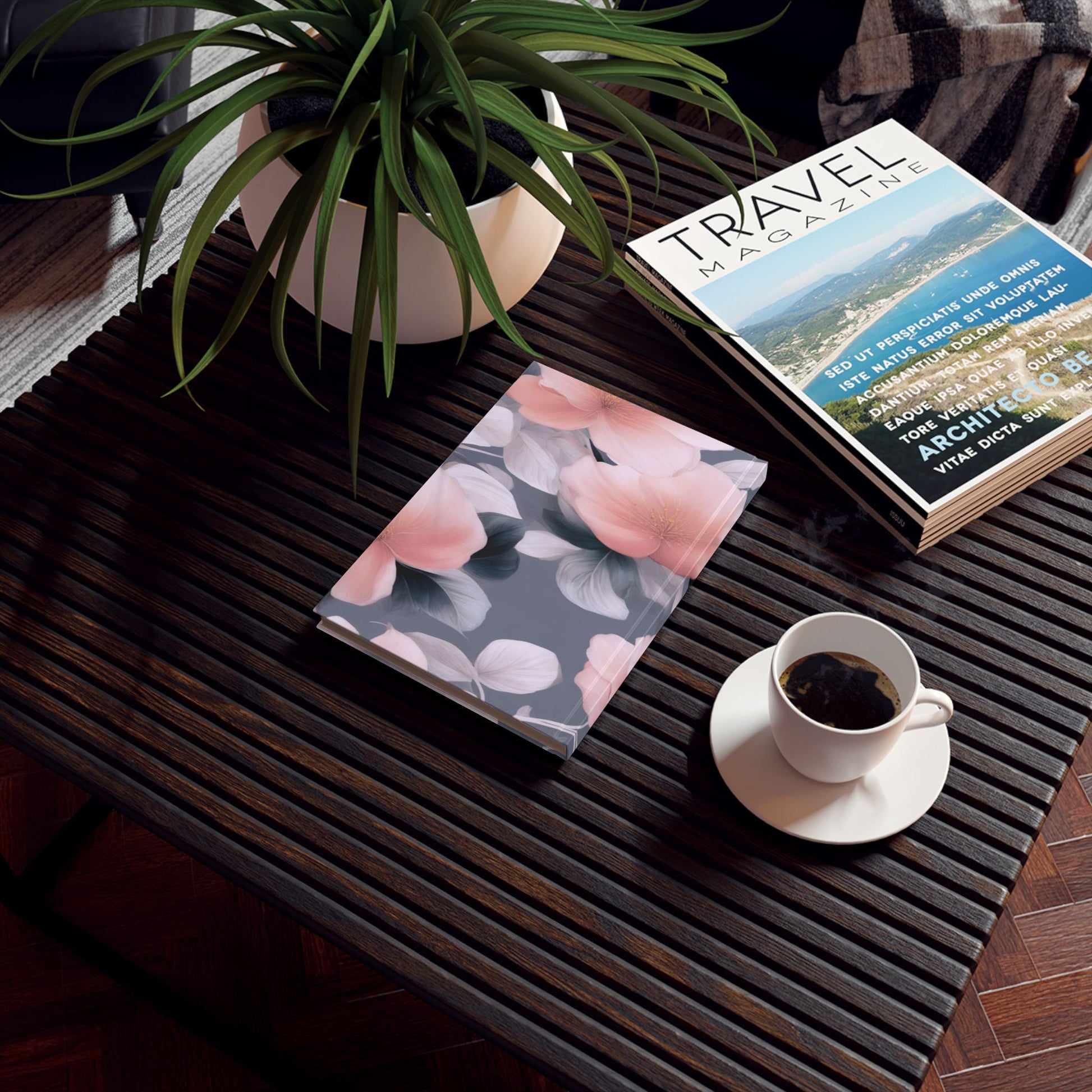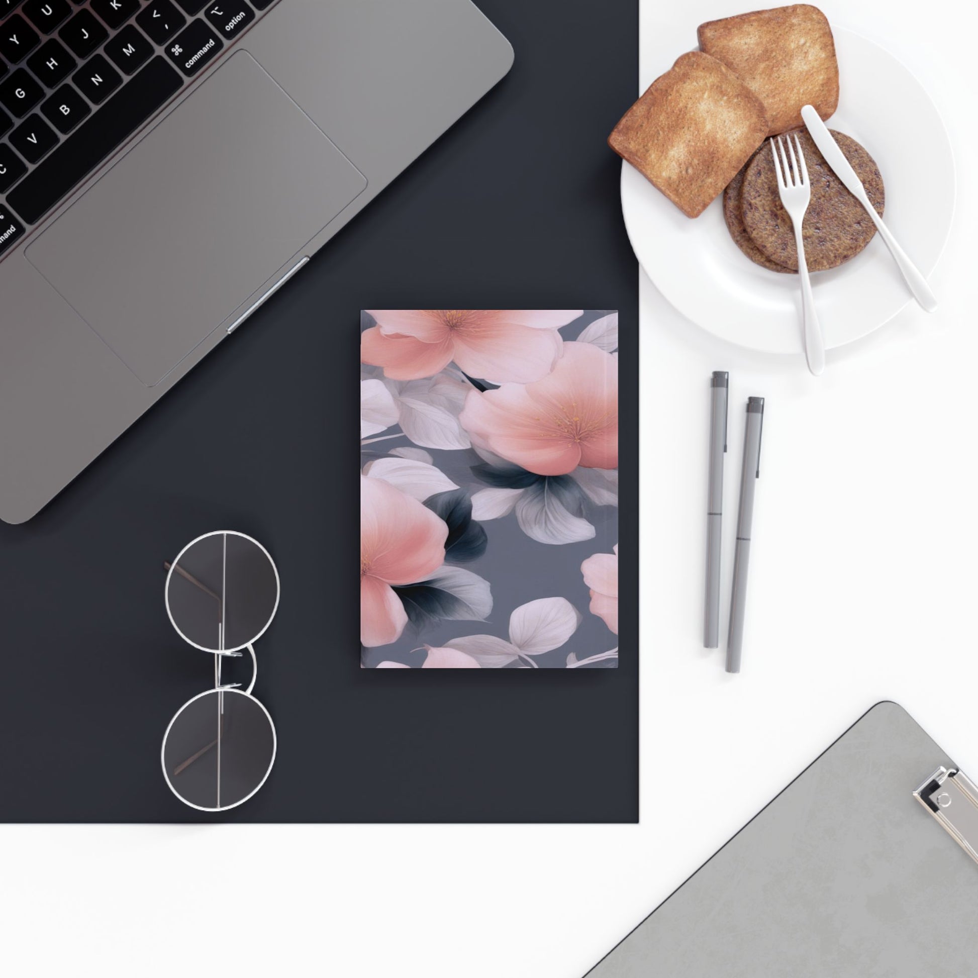 Peach and Blue Gray Floral Bunch Hard Backed Journal with 128 blank pages, 5.2" x 7.4"