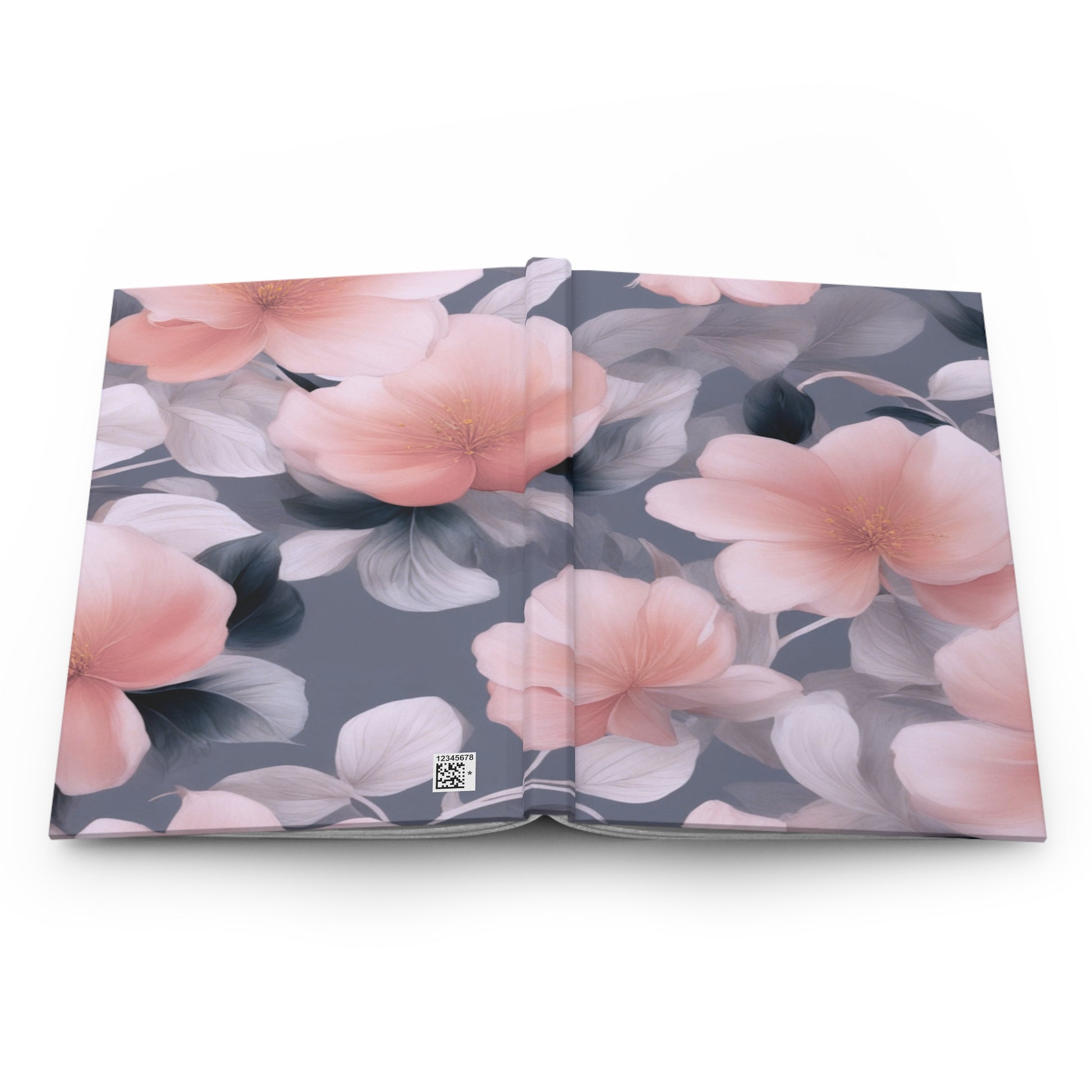 Peach and Blue Gray Floral Bunch Hardcover Journal Matte with 150 lined pages, 5.75" x 8"