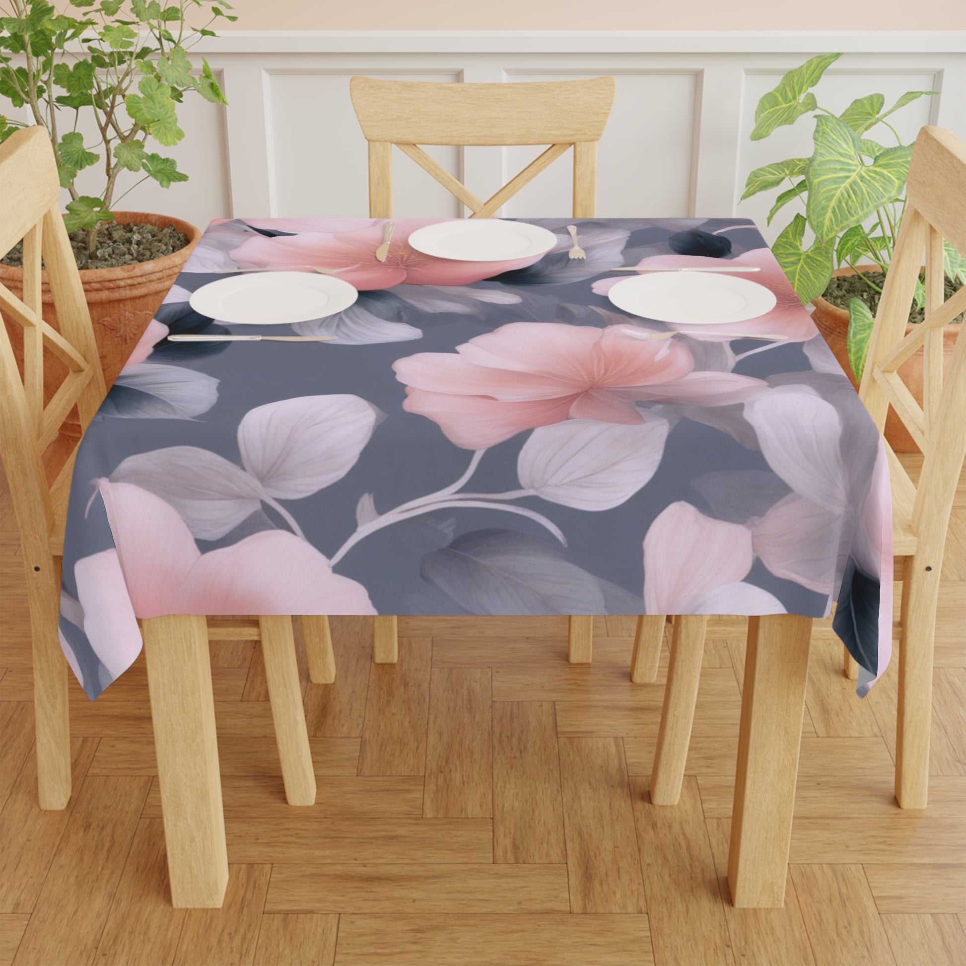 Peach and Blue Gray Floral Bunch Tablecloth, 55" x 55"