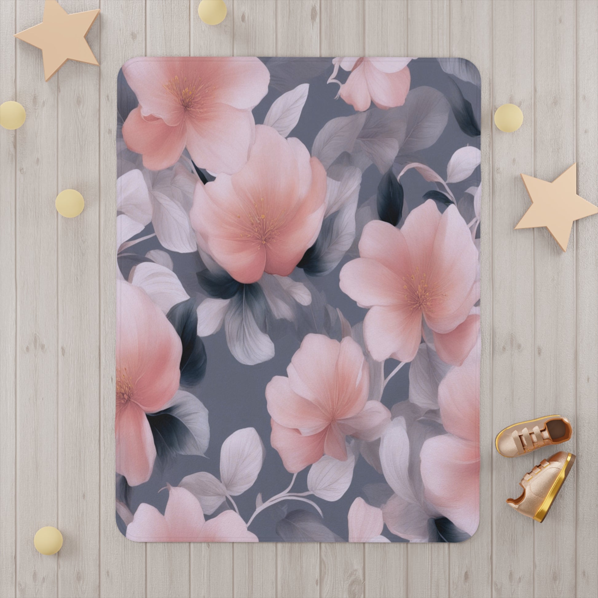 Peach and Blue Gray Floral Bunch Toddler Blanket, 30" x 40"