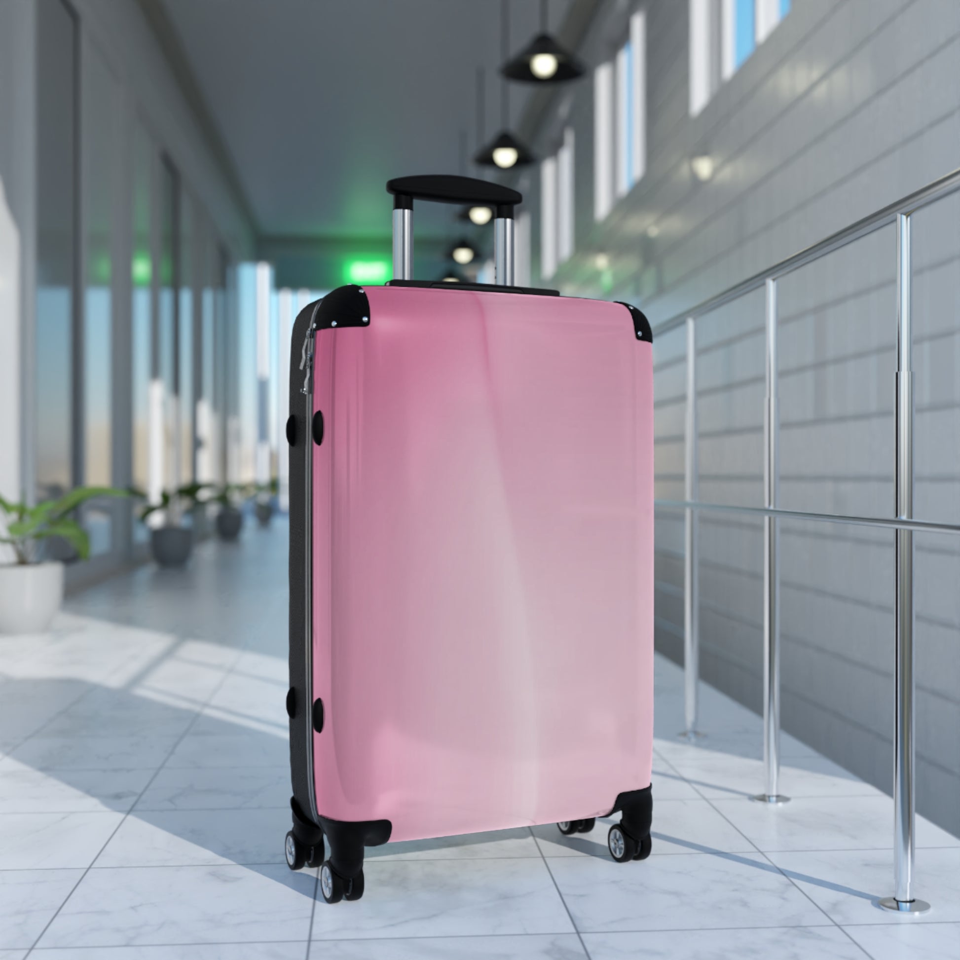 Pink Blush Fade Medium Suitcase with built in lock, 4 double-wheels, telescopic handle, and ABS back hard-shell