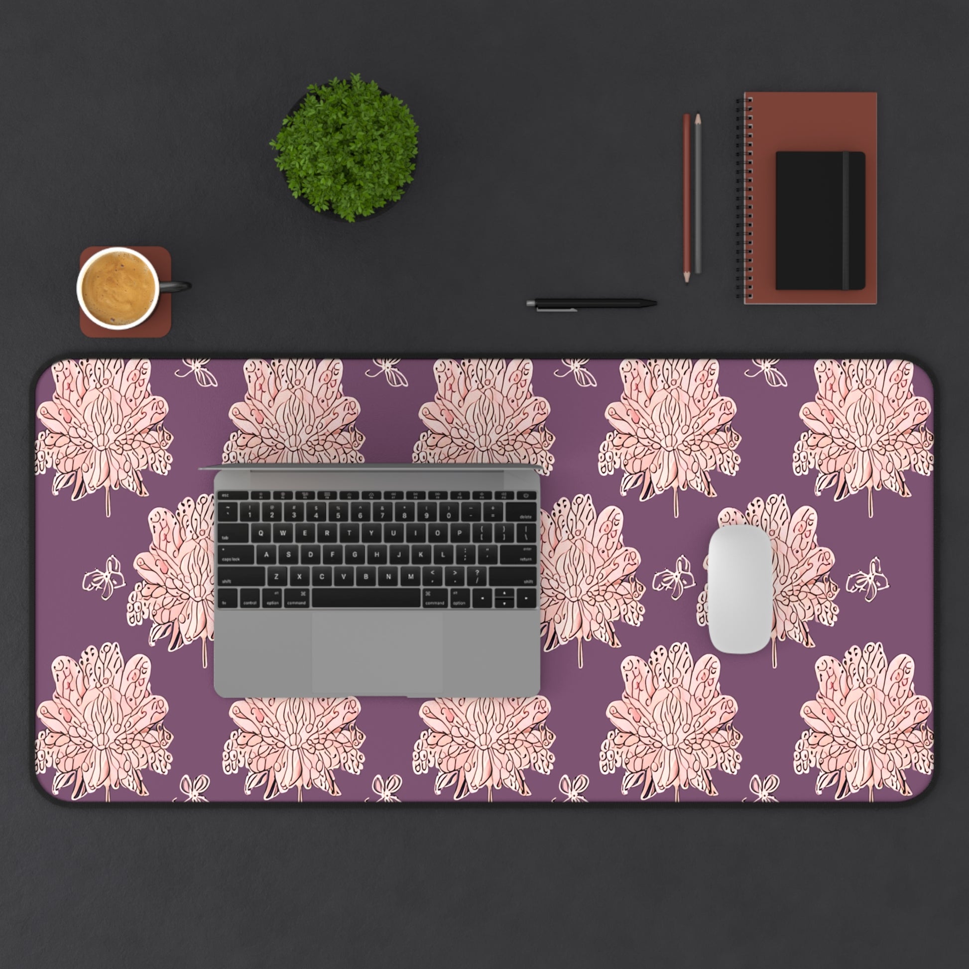 Pink Floral Butterflies 16" x 32" Desk Mat