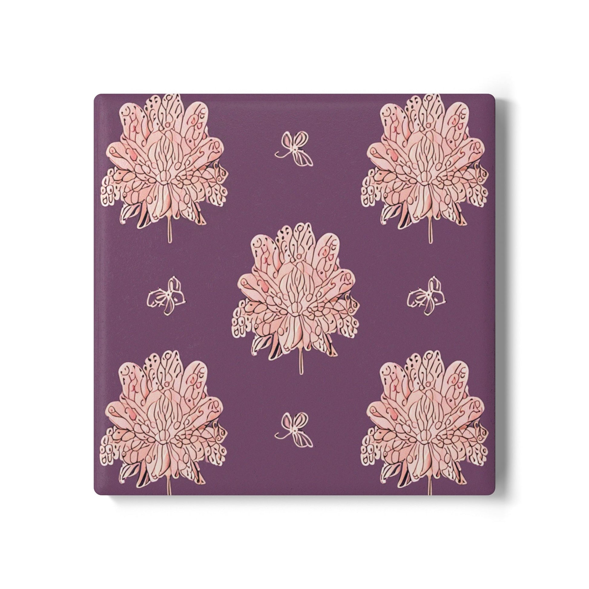 Pink Floral Butterflies 4" x 4" Square Ceramic Coaster