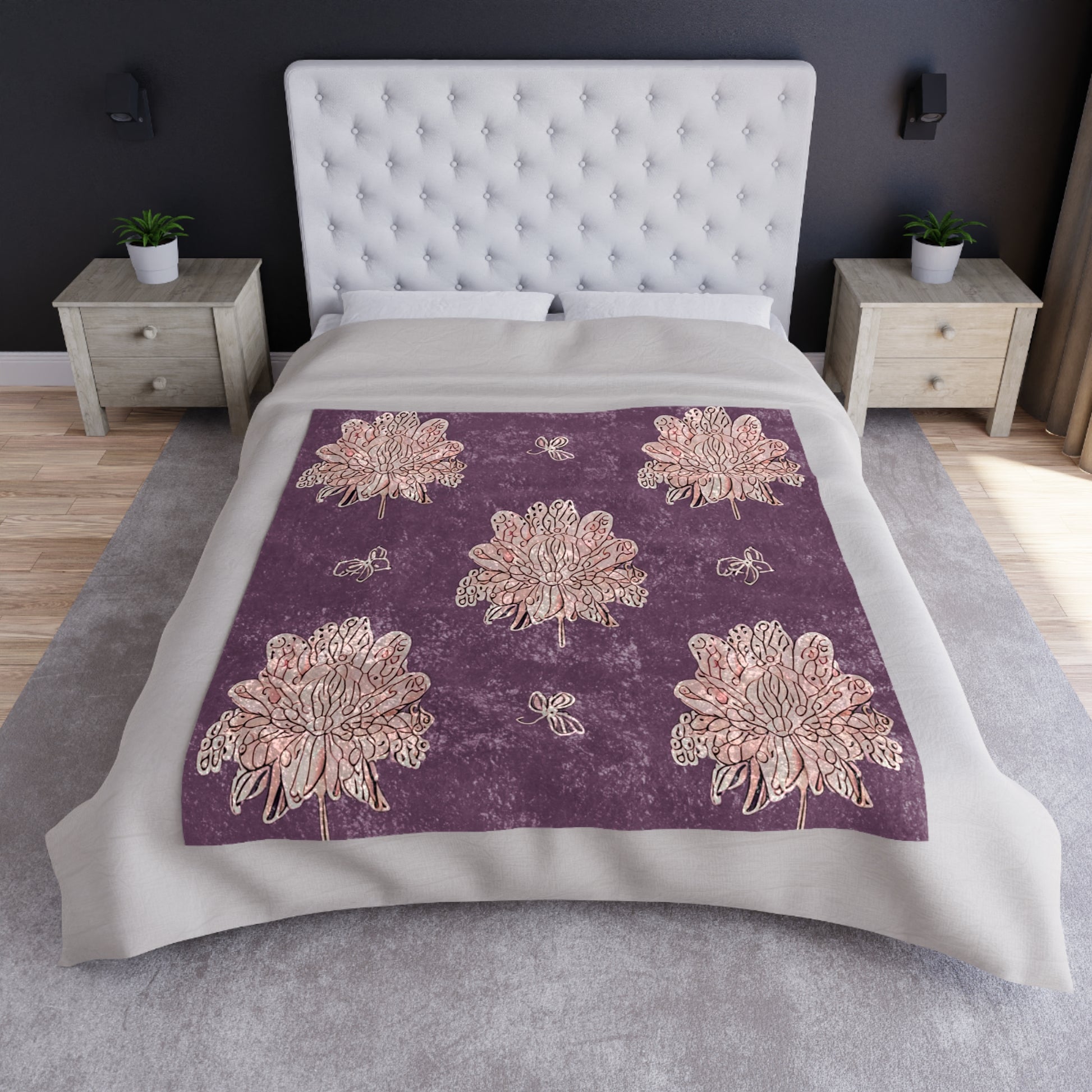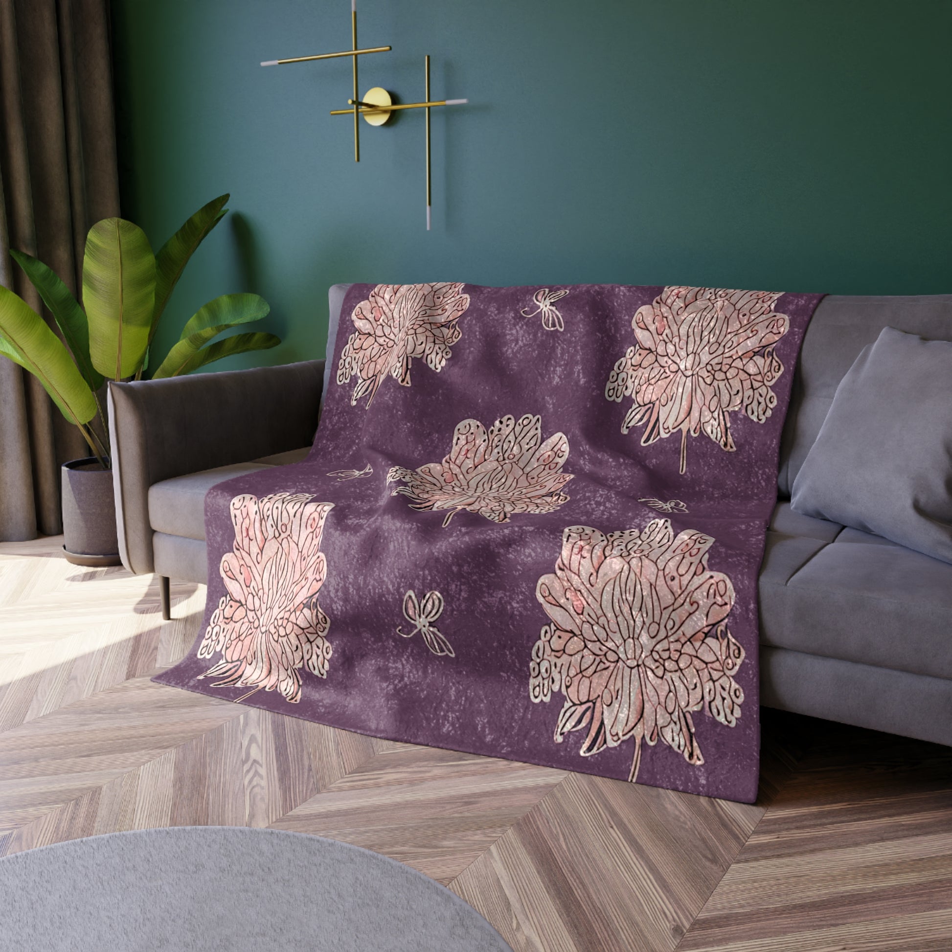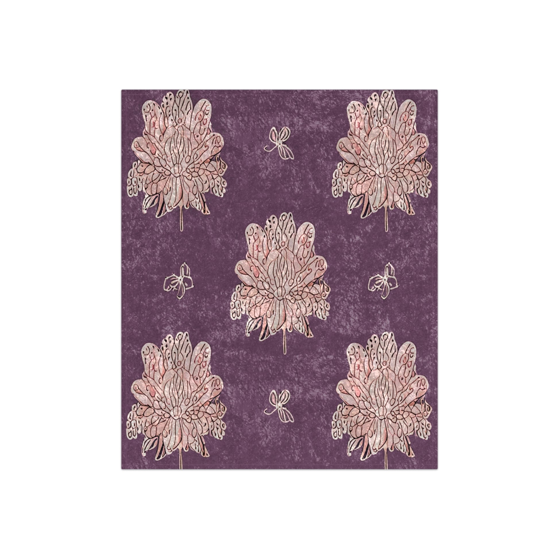 Pink Floral Butterflies 50" x 60" Crushed Velvet Blanket