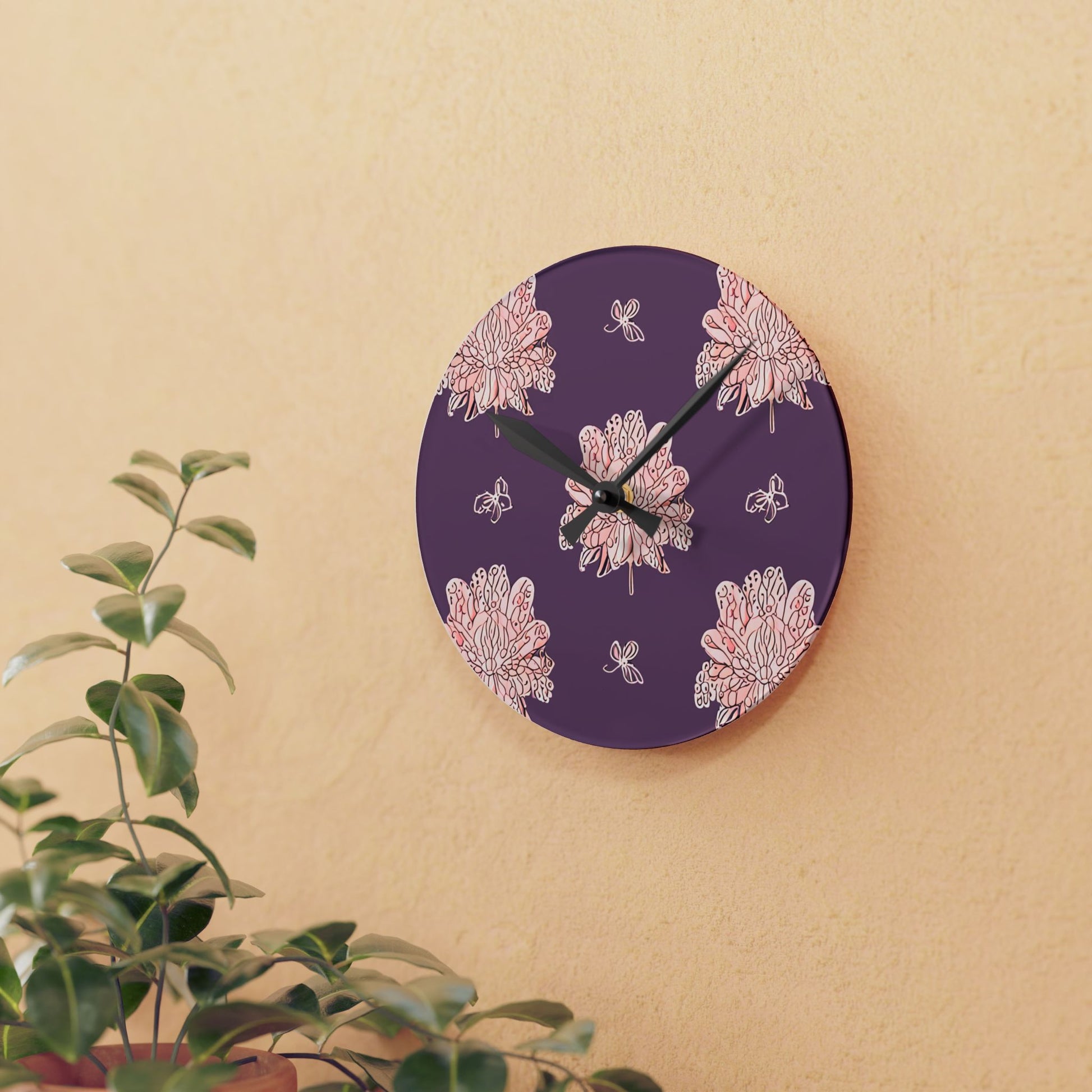 Pink Floral Butterflies Acrylic Round Wall Clock, 8" x 8"