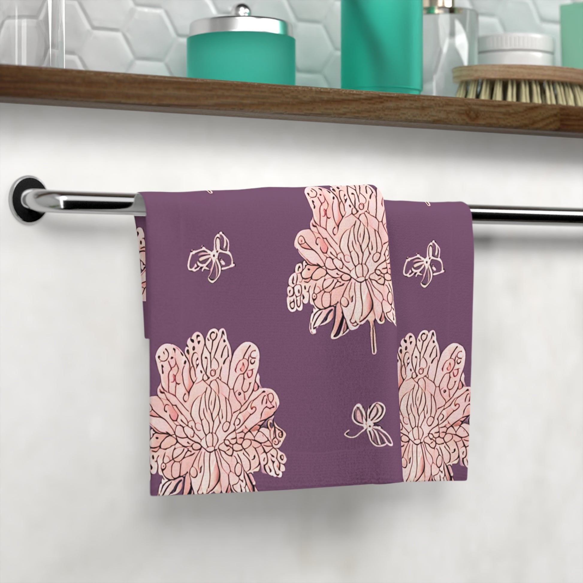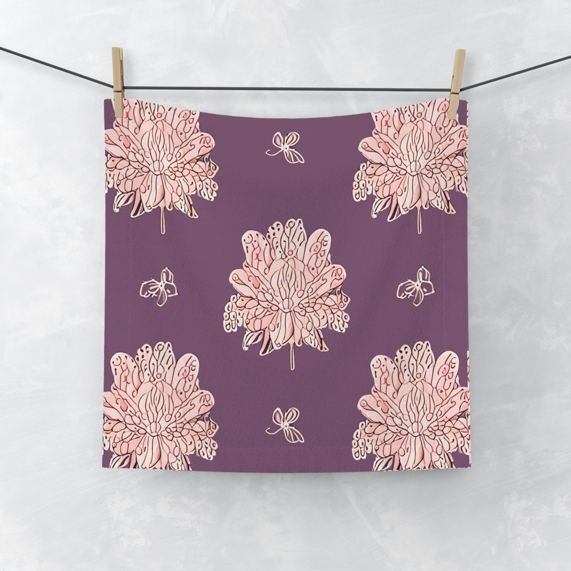Pink Floral Butterflies Face Towel, 13" x 13"