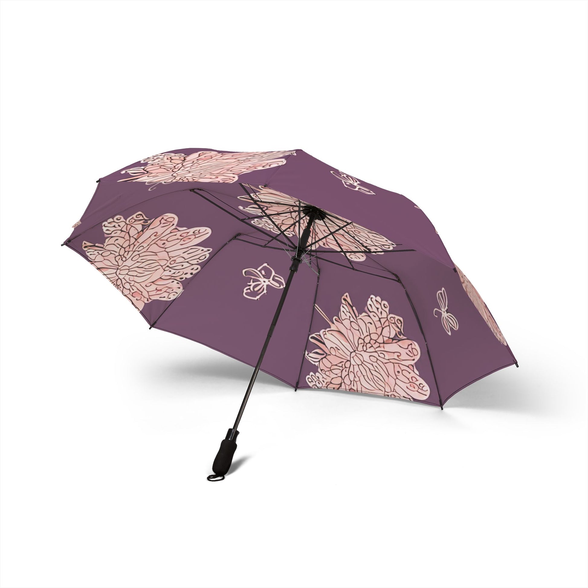 Pink Floral Butterflies Foldable Umbrella - Compact & Chic