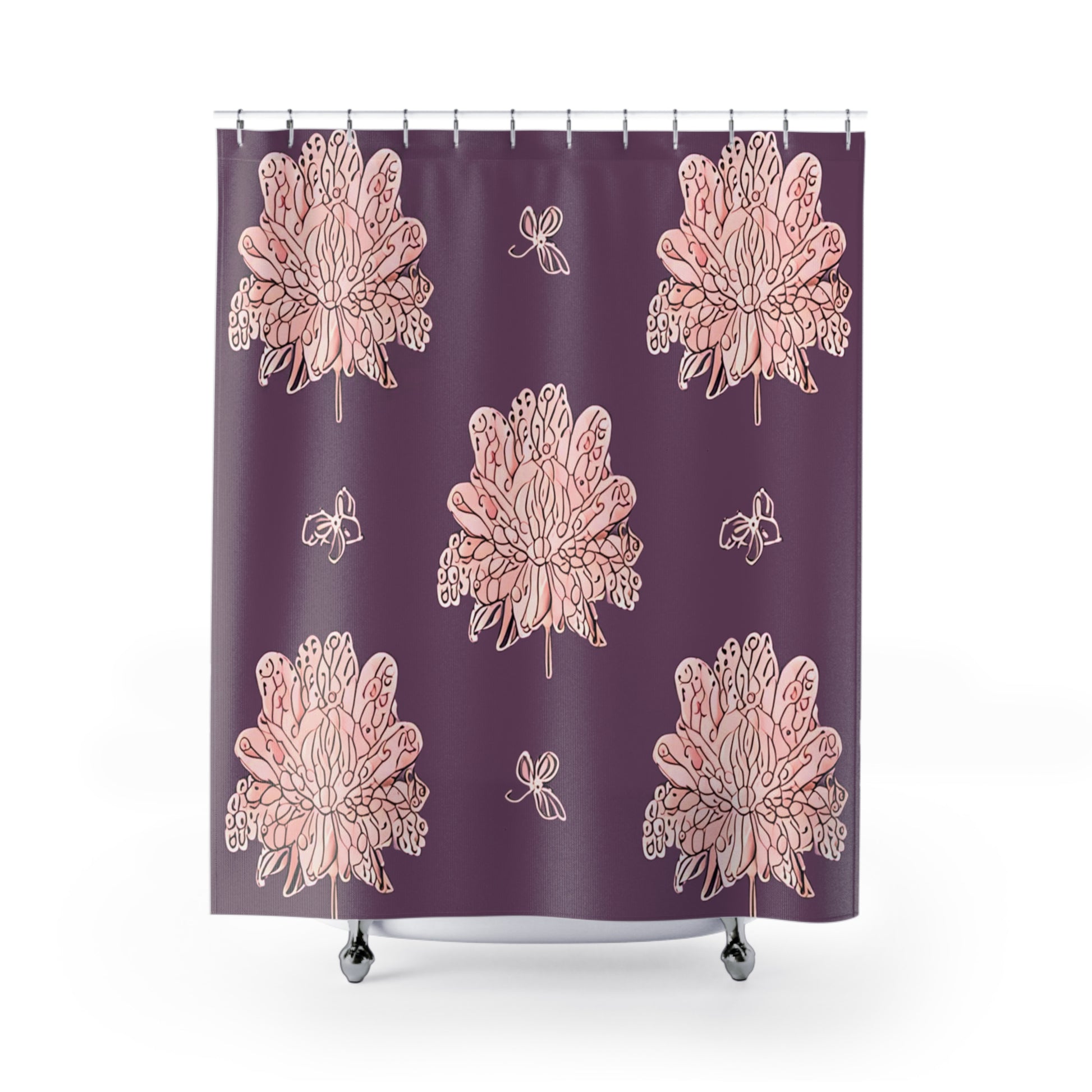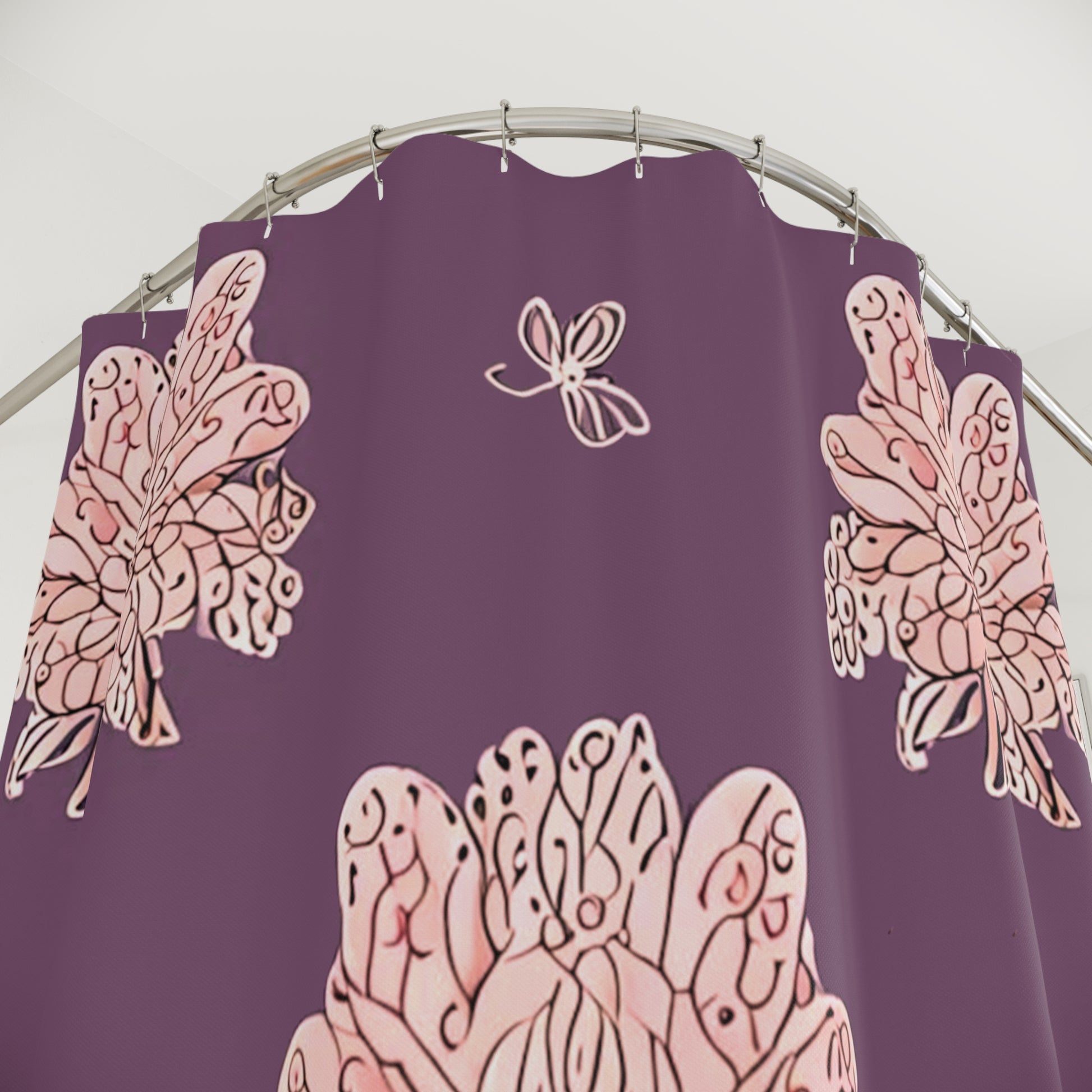 Pink Floral Butterflies Shower Curtain, 71" x 74"