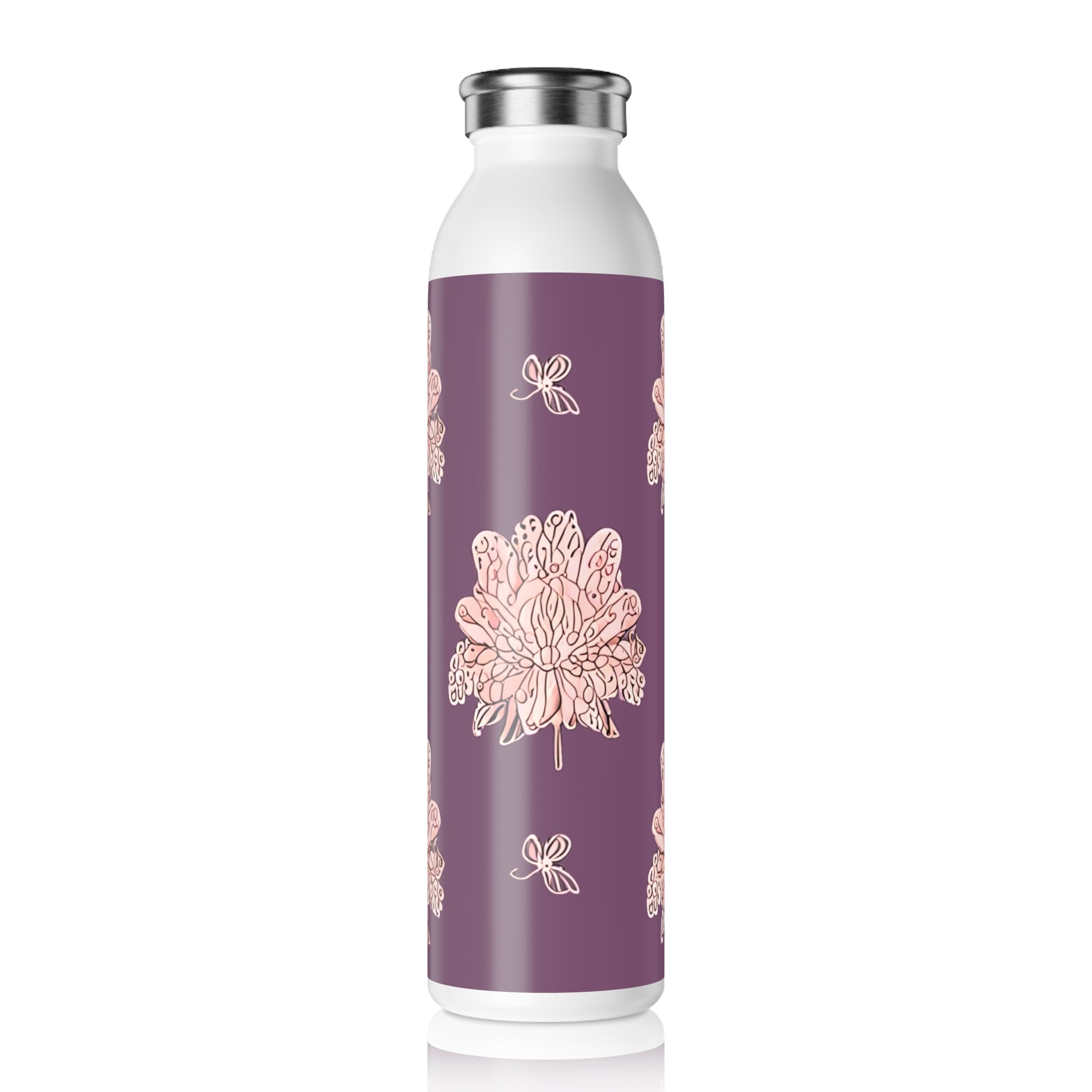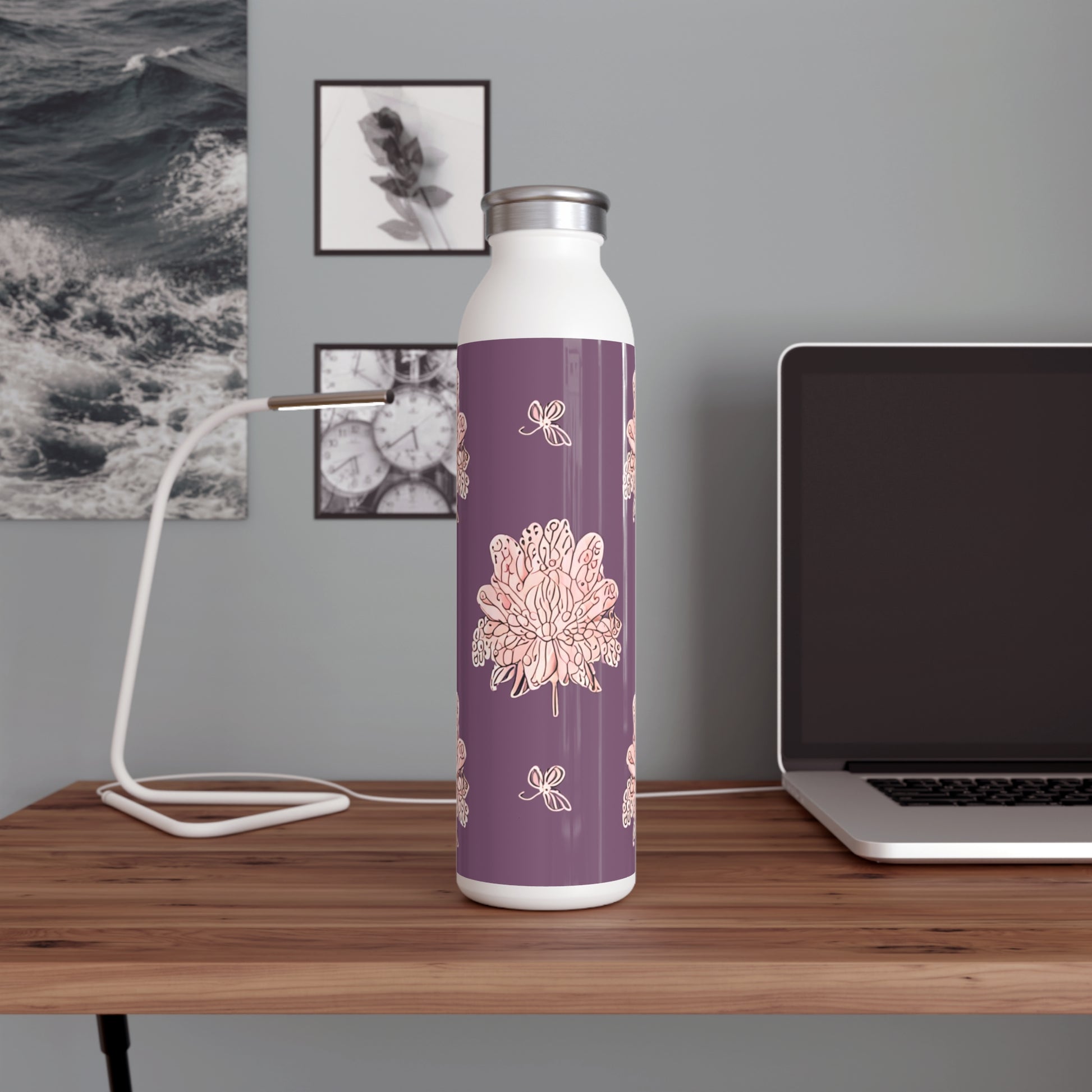 Pink Floral Butterflies Slim Water Bottle, 20 oz White