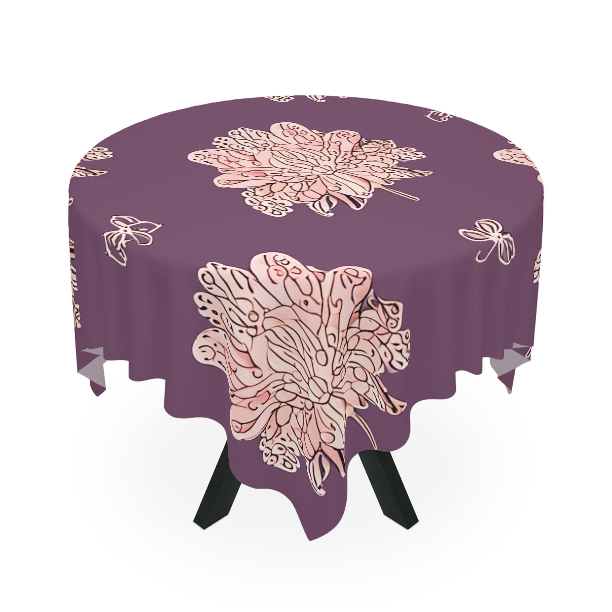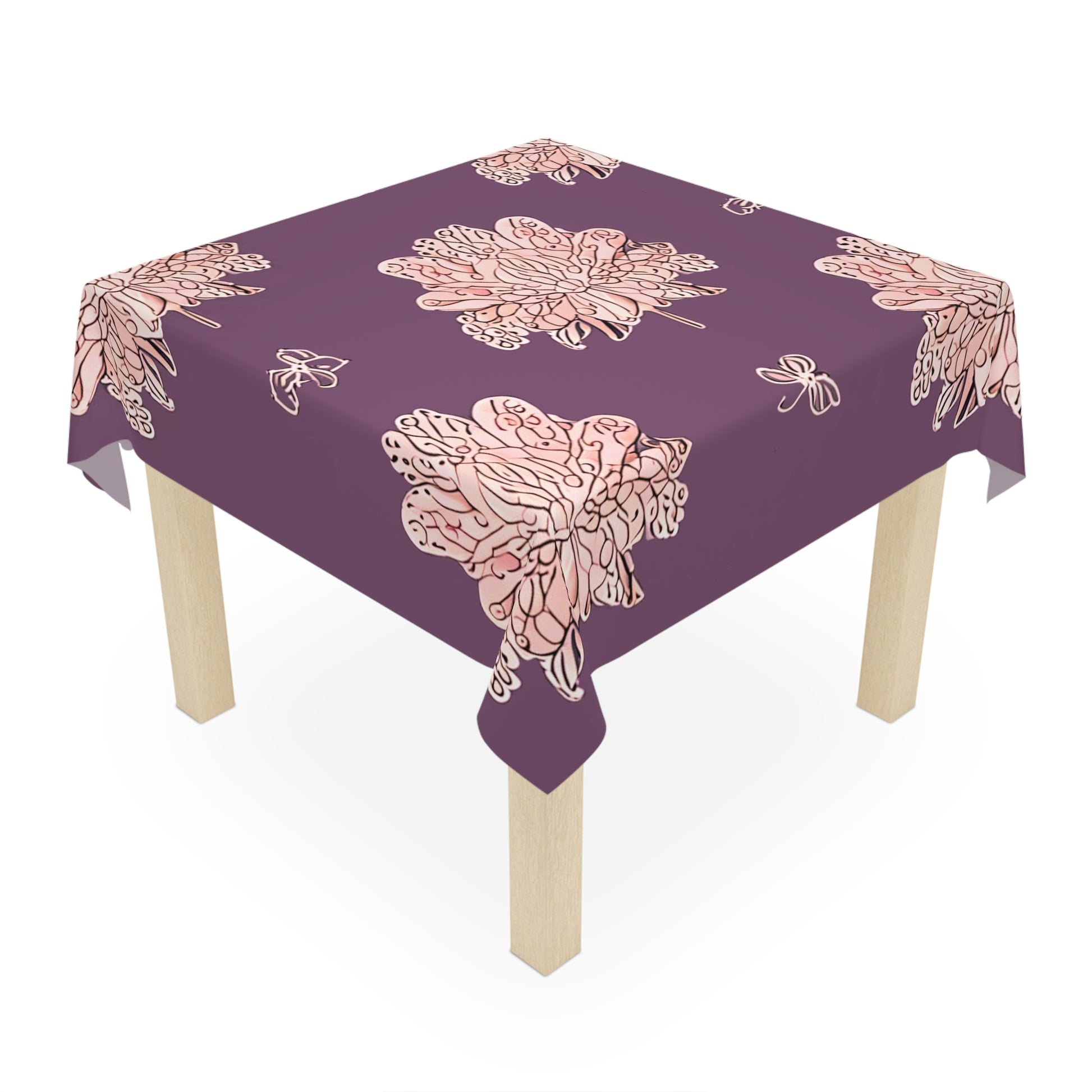 Pink Floral Butterflies Tablecloth, 55" x 55"