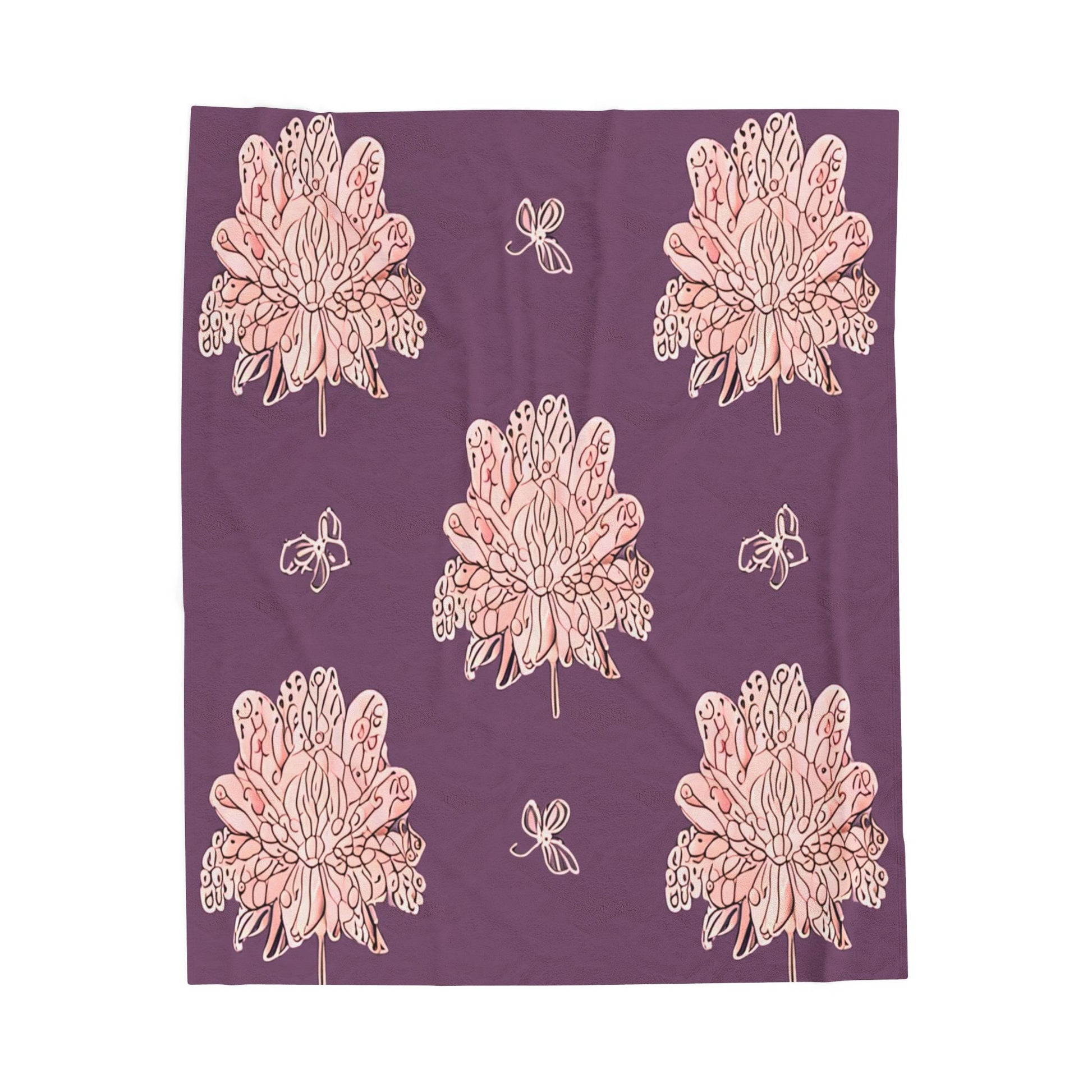 Pink Floral Butterflies Velveteen Plush Blanket, 50" x 60"