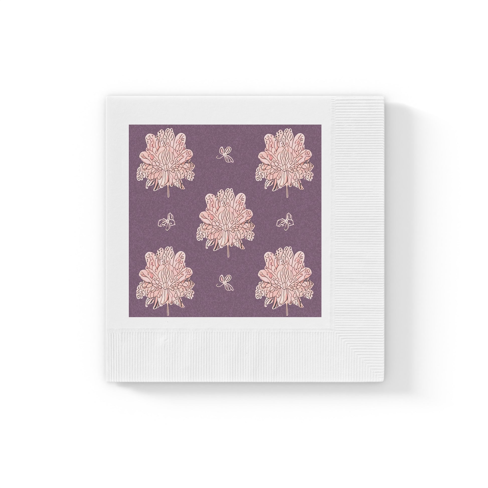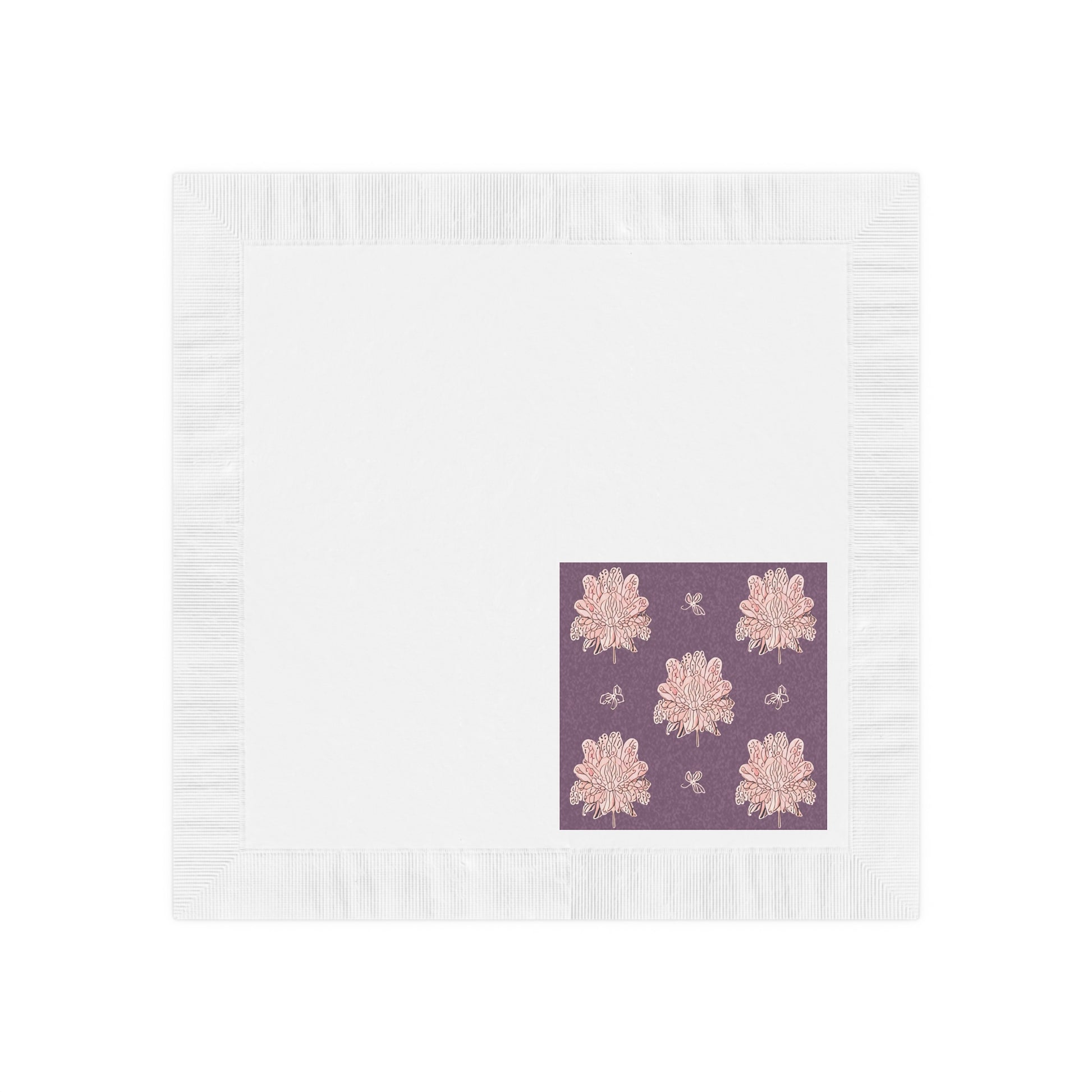 Pink Floral Butterflies White Coined Napkins, 6.5" x 6.5"