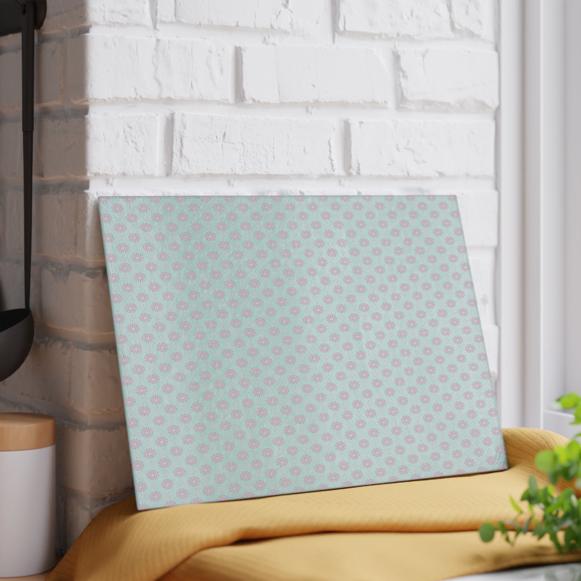 Pink Mornings Star-crossed Bodies Glass Cutting Board, 8" x 11"