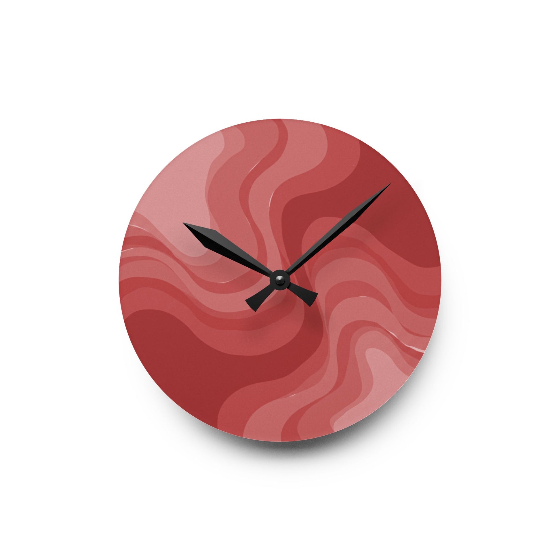 Power Red Wavey 8" x 8" Round Acrylic Wall Clock