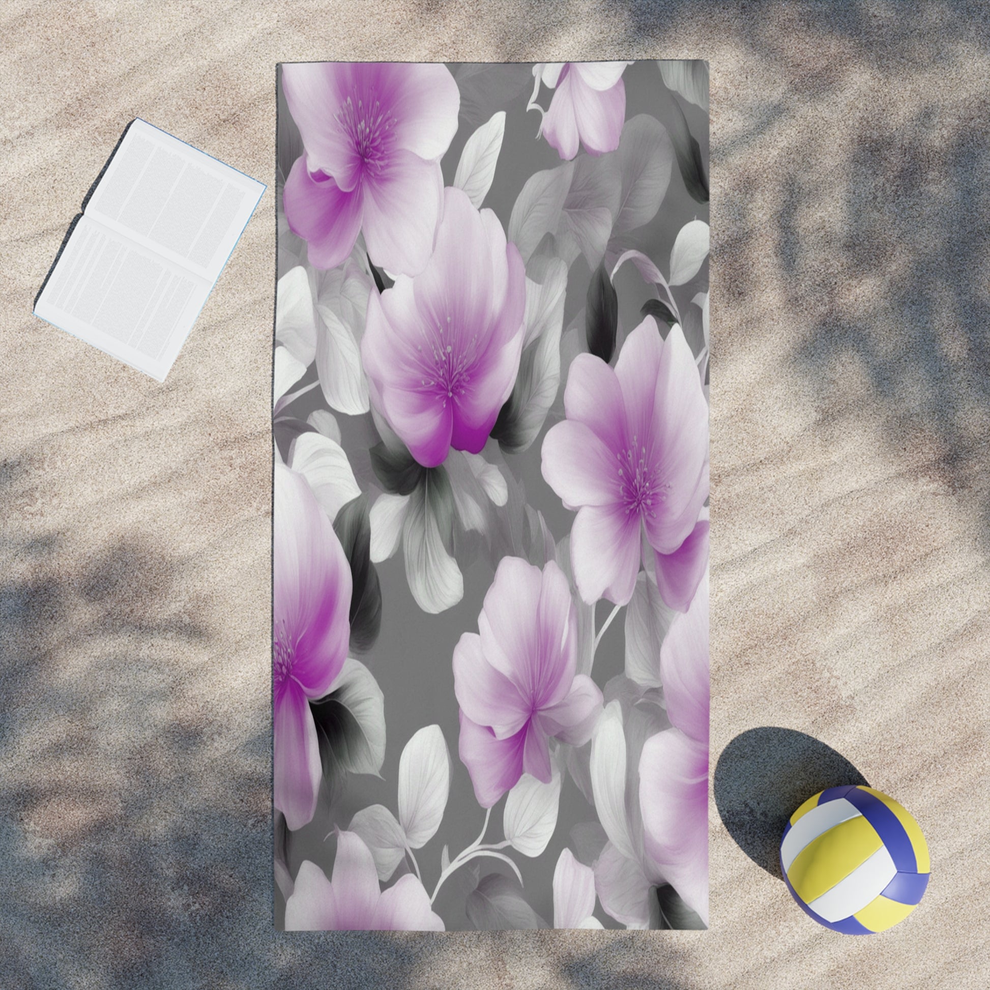 Purple Blossom Floral Bunch Beach Towel, 30" x 60"
