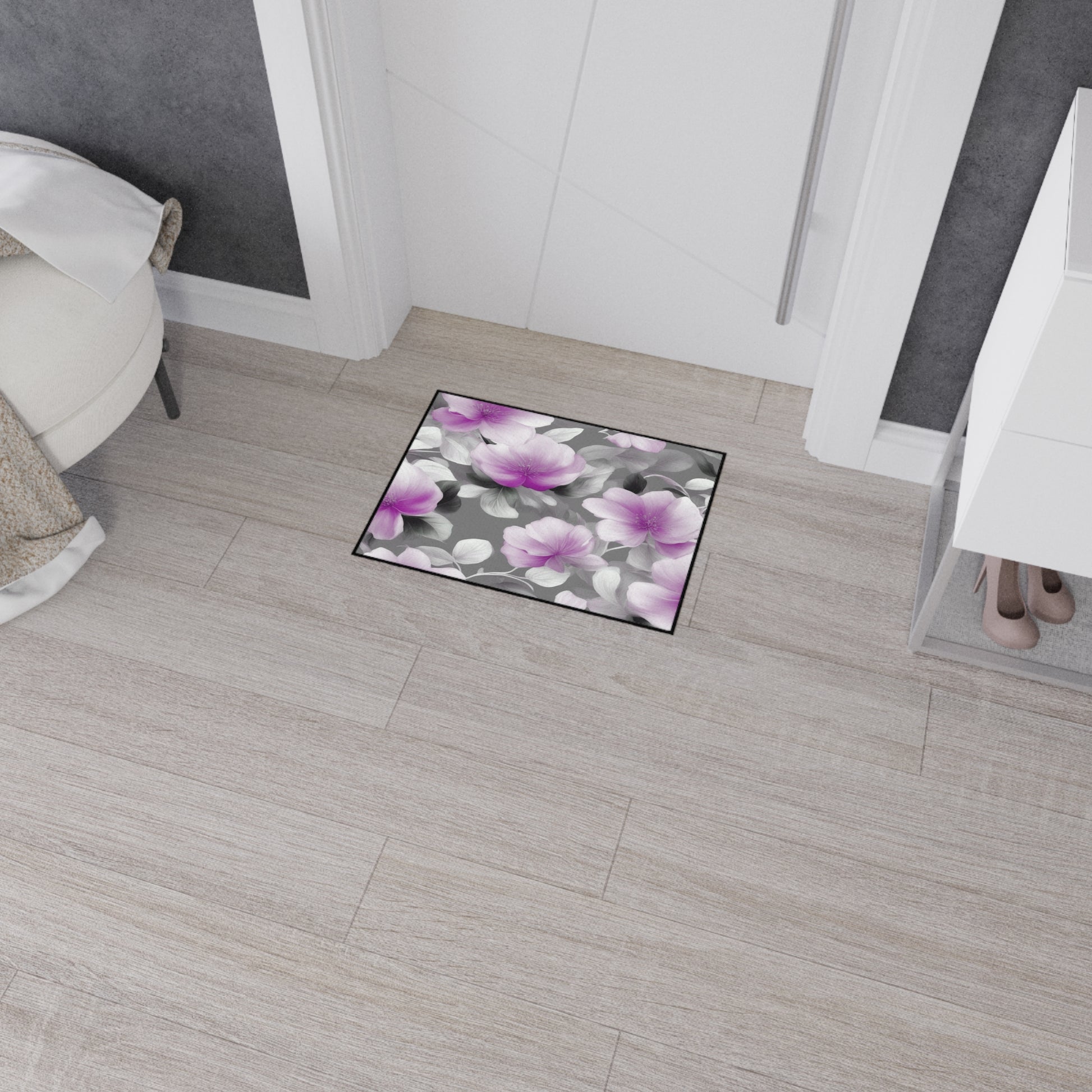 Purple Blossom Floral Bunch Heavy Duty Floor Mat, 18" x 24"