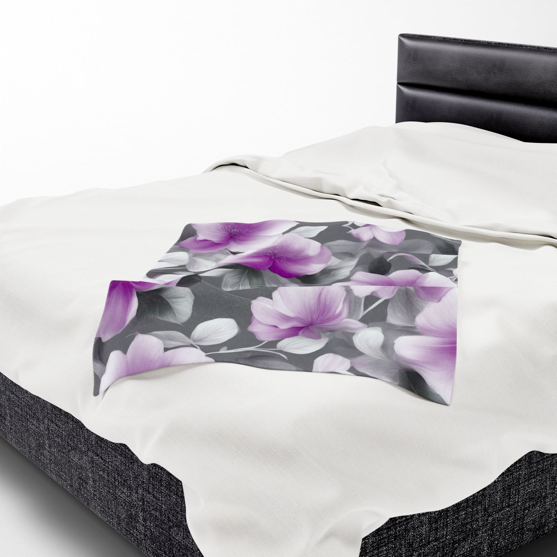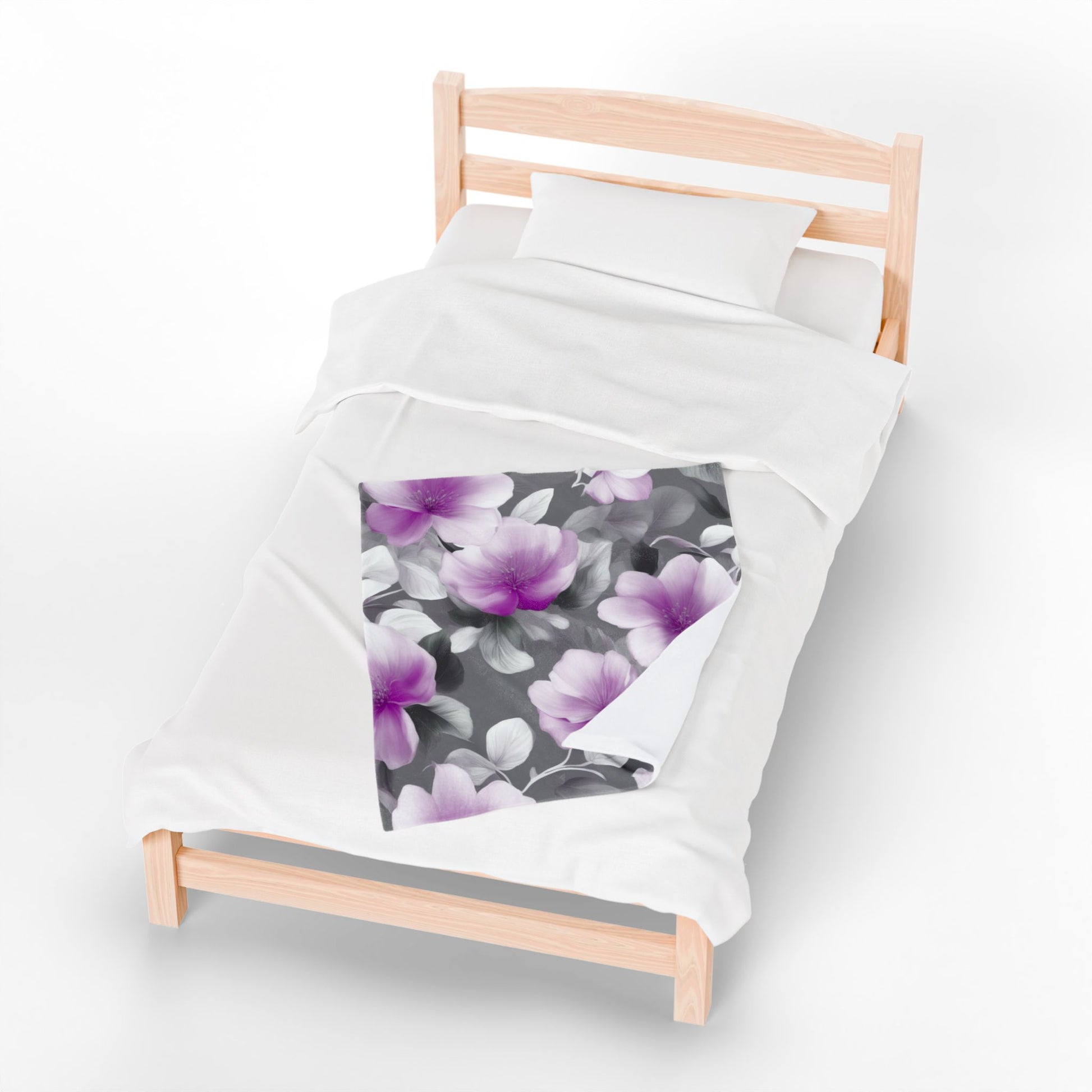Purple Blossom Floral Bunch Velveteen Plush Blanket, 30" x 40"