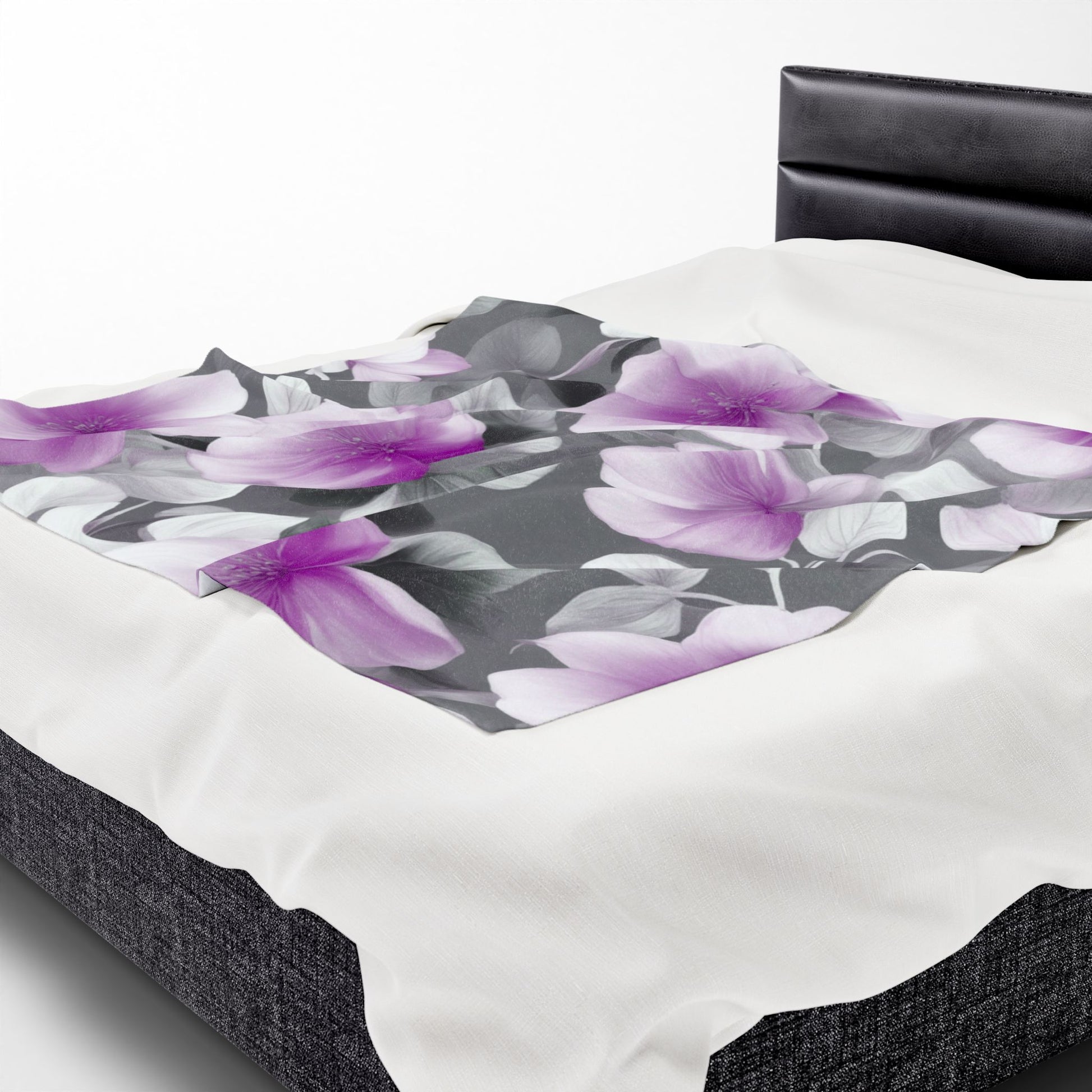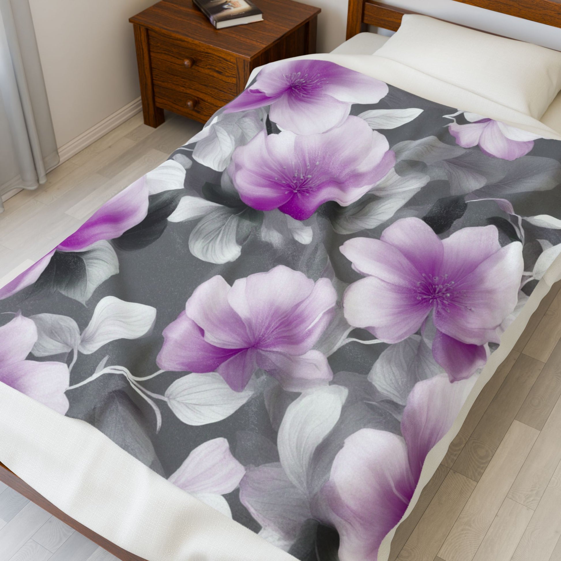 Purple Blossom Floral Bunch Velveteen Plush Blanket, 50" x 60"