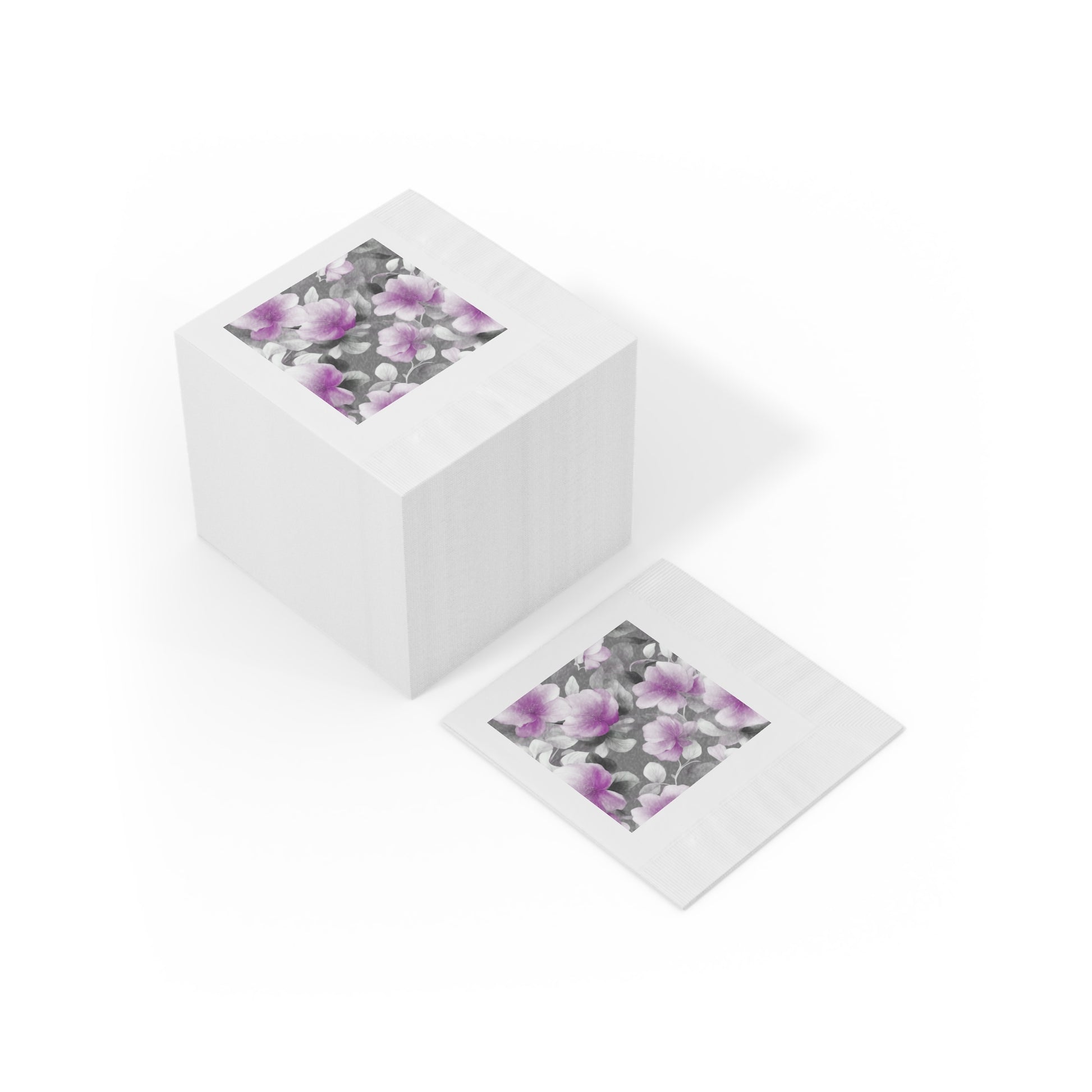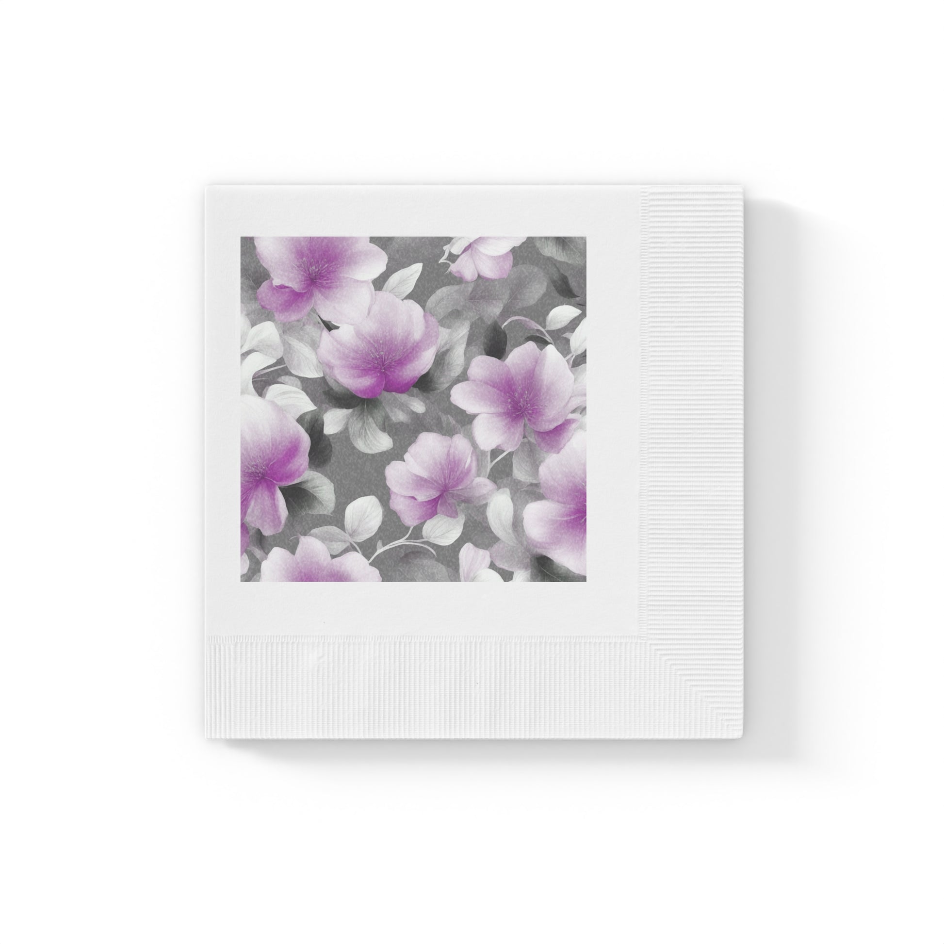 Purple Blossom Floral Bunch White Coined Napkins, 4.8" x 4.8"