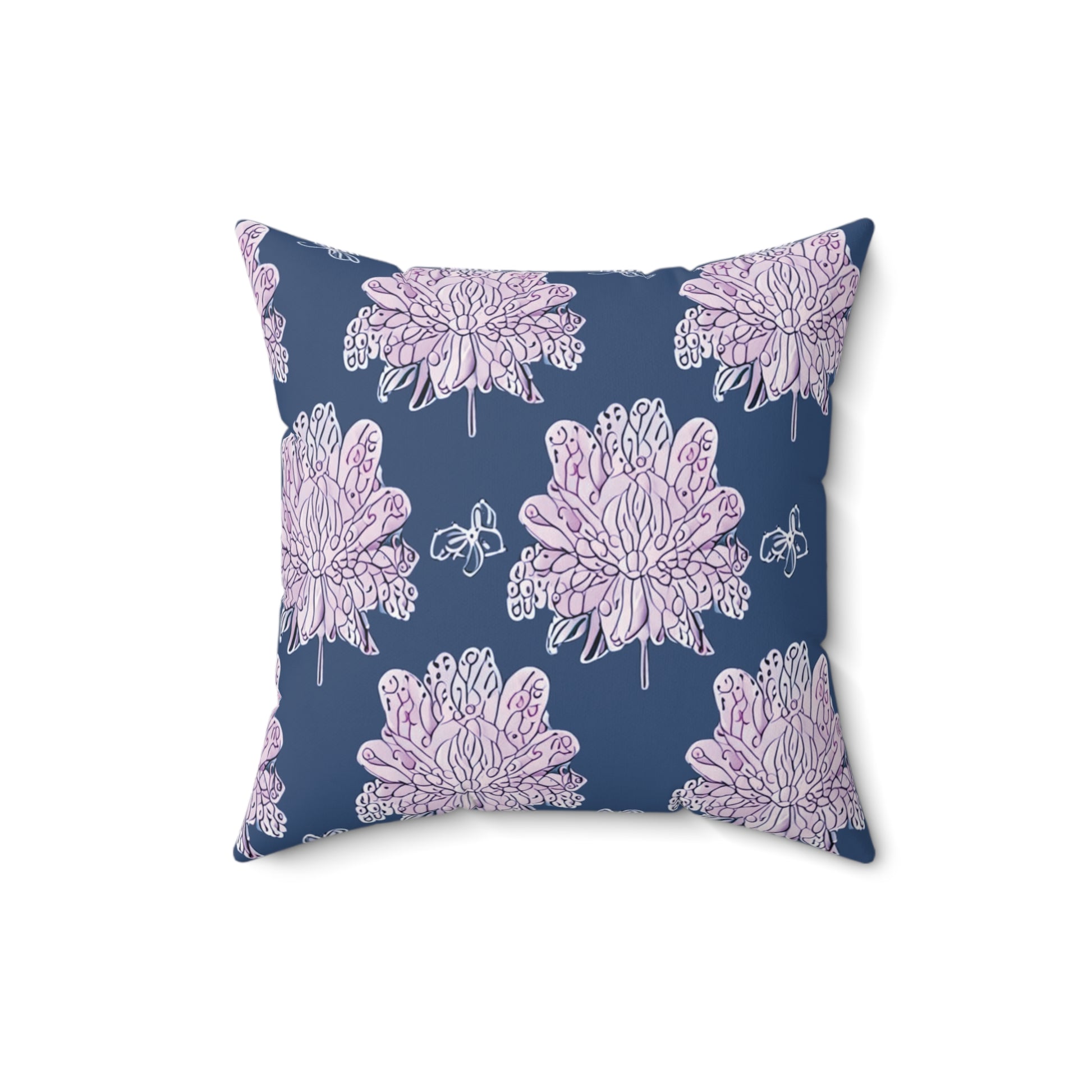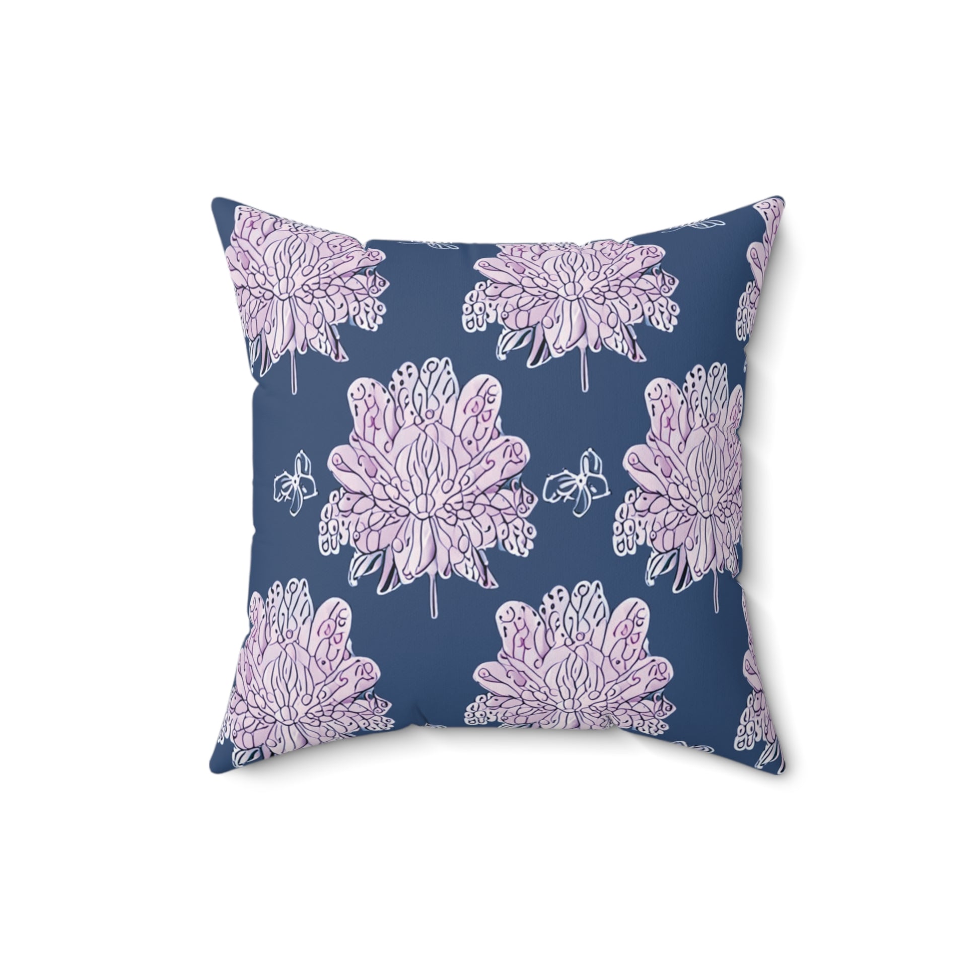 Purple White Floral Butterflies 16" x 16" Faux Suede Square Pillow