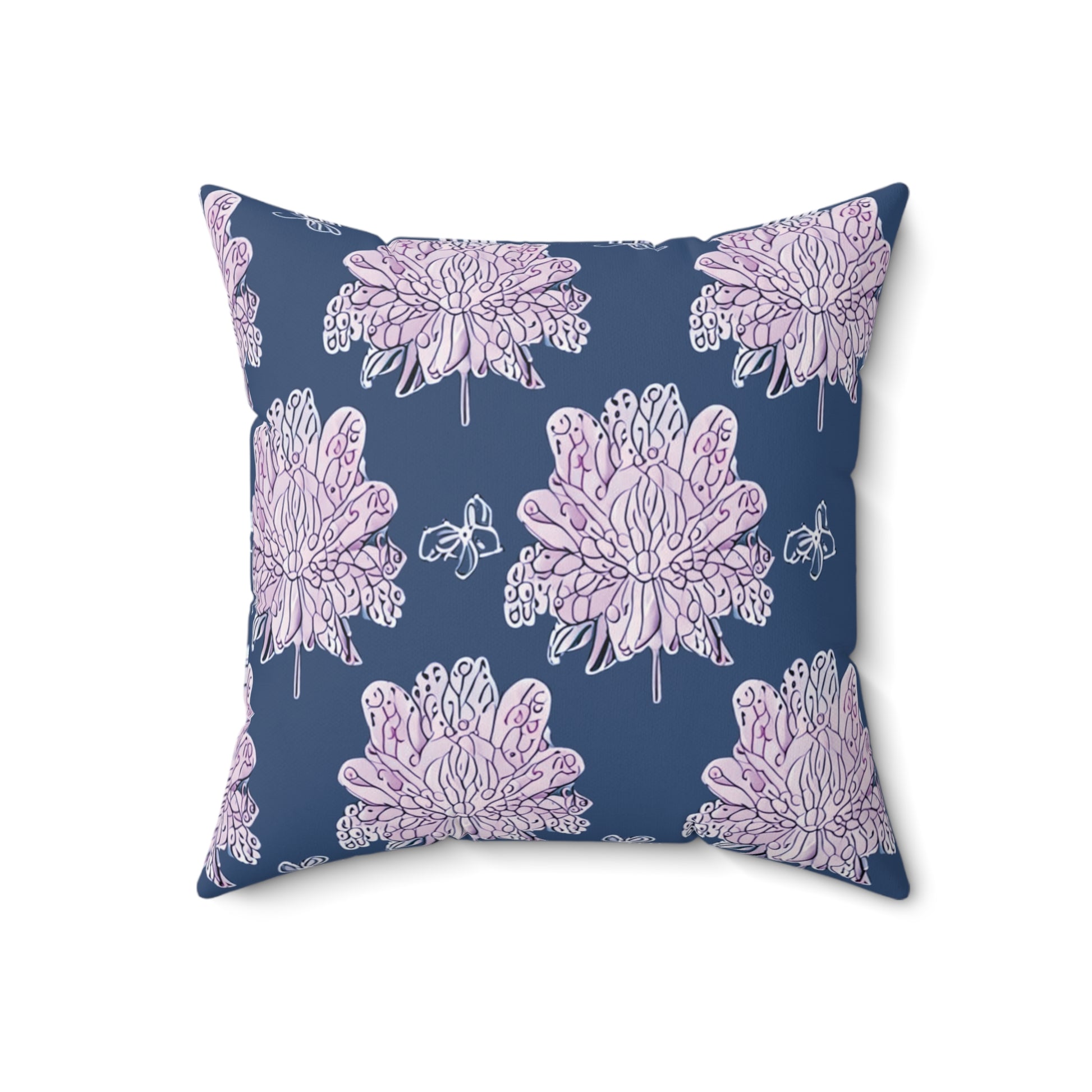 Purple White Floral Butterflies 18" x 18" Faux Suede Square Pillow