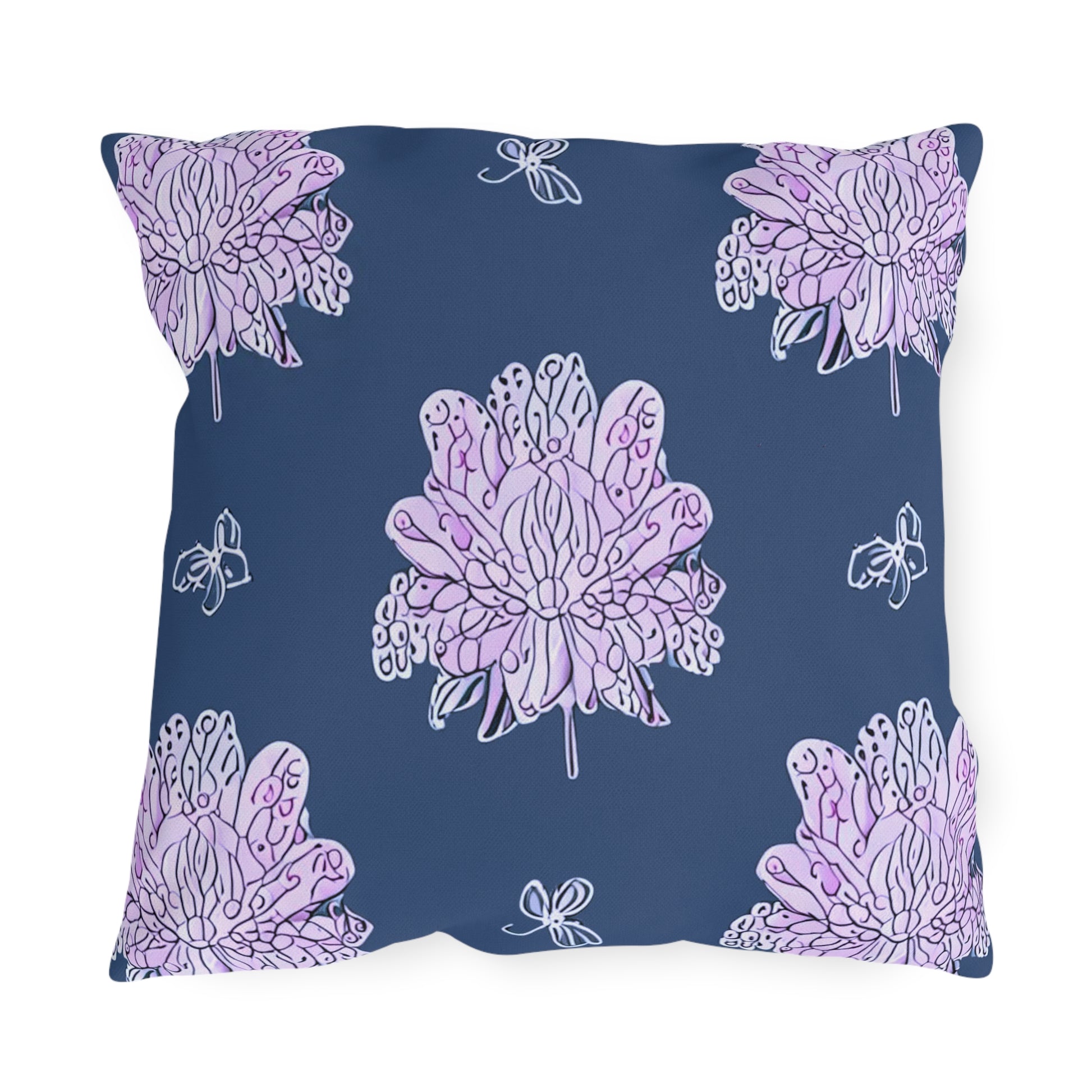Purple White Floral Butterflies 18" x 18" Outdoor Pillow