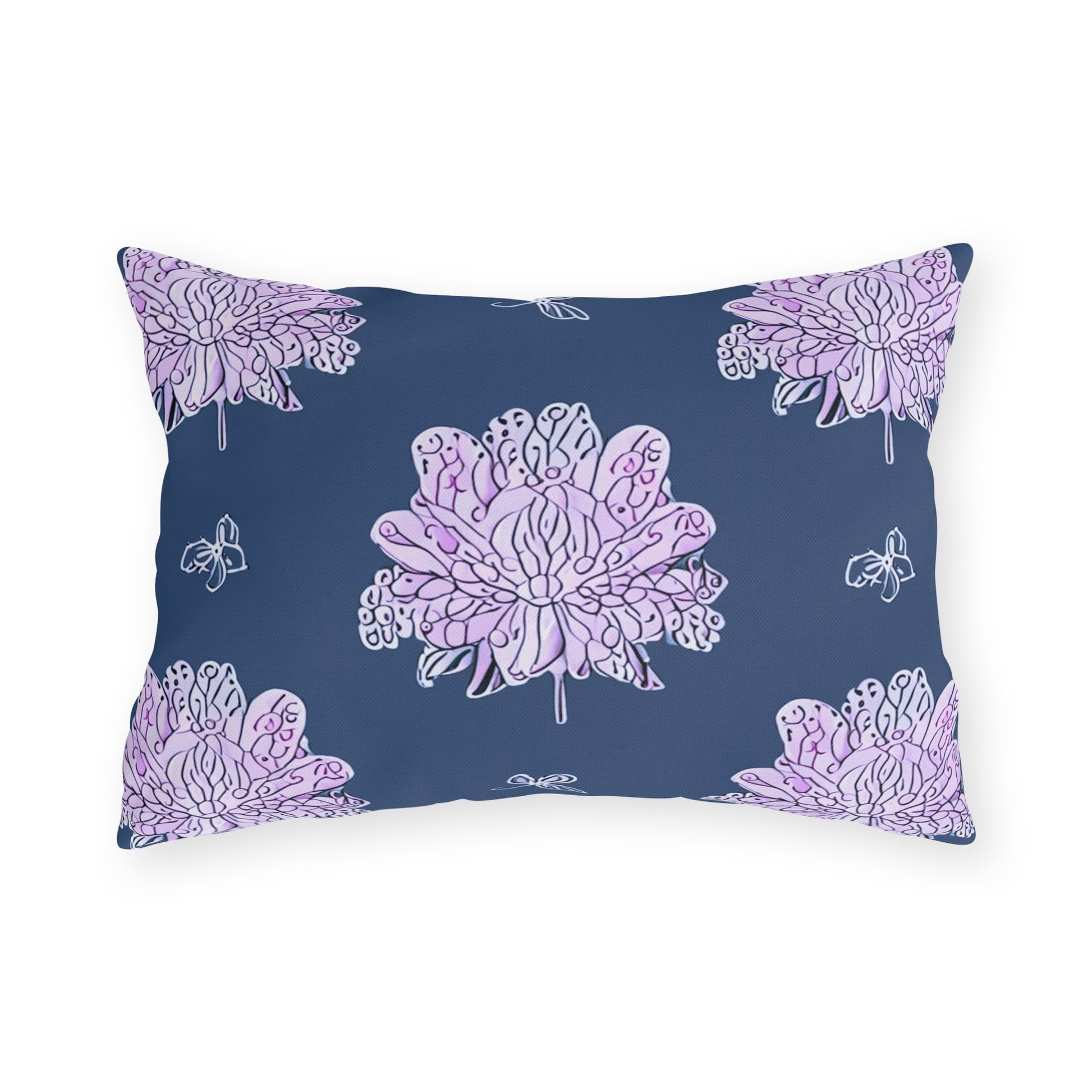 Purple White Floral Butterflies 20" x 14" Outdoor Pillow