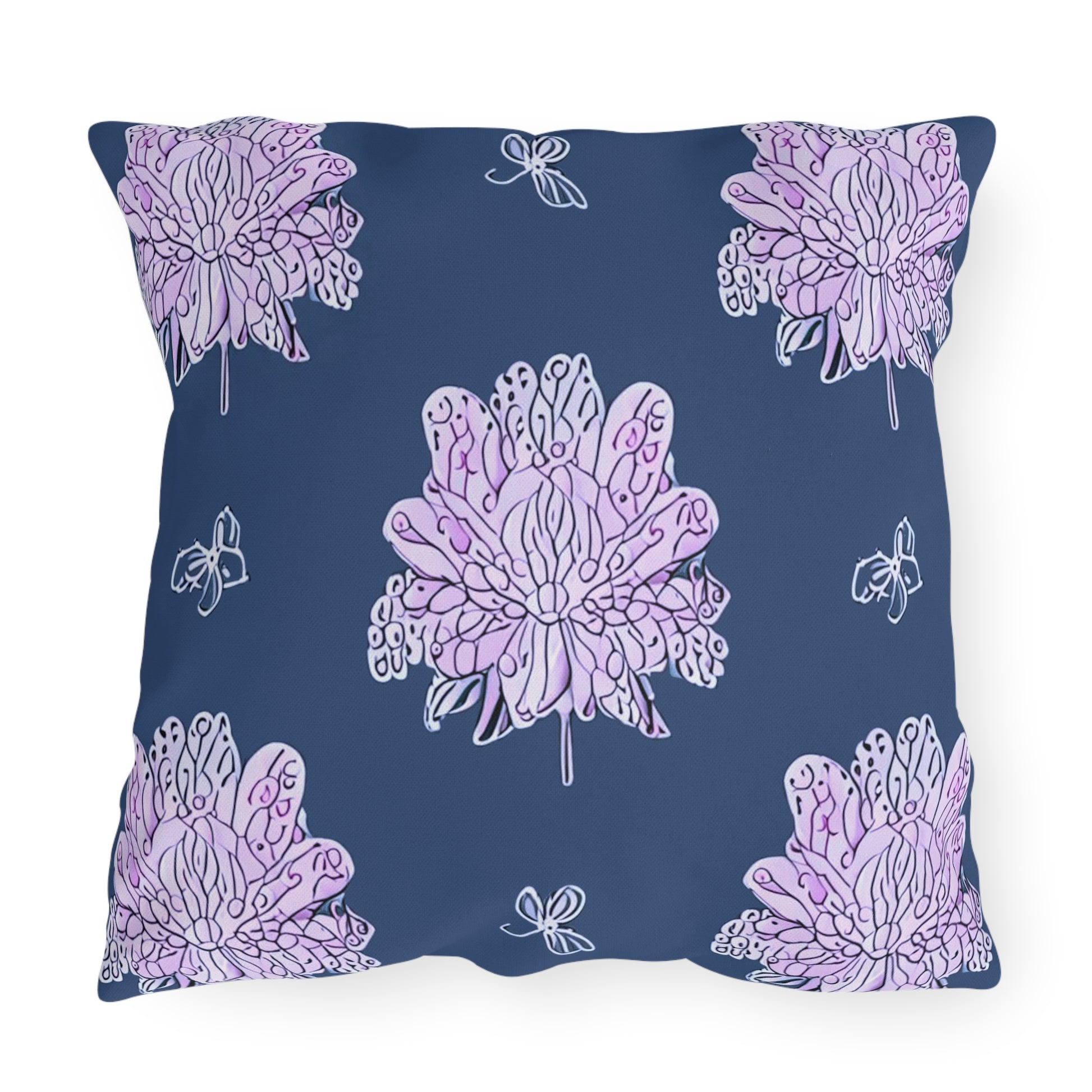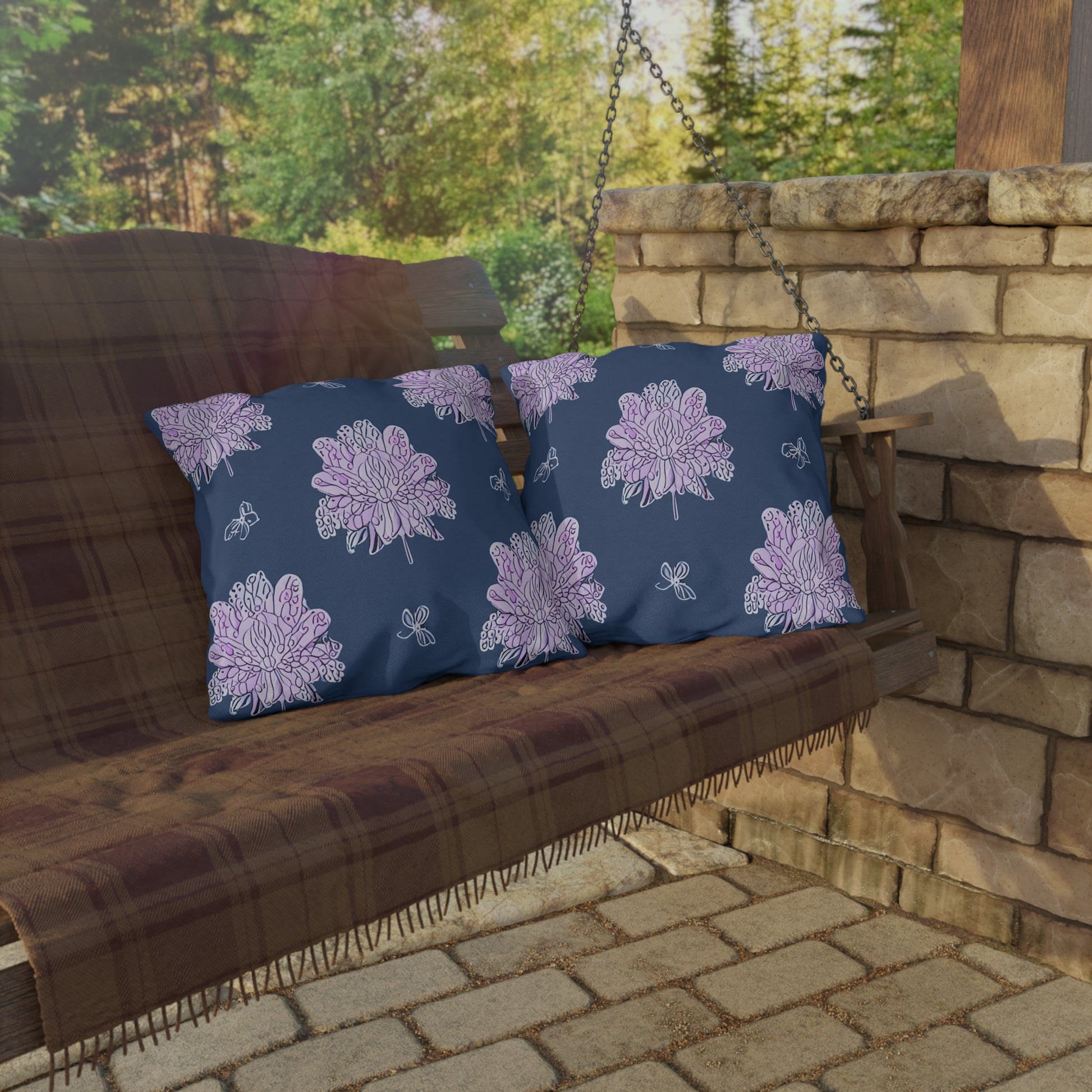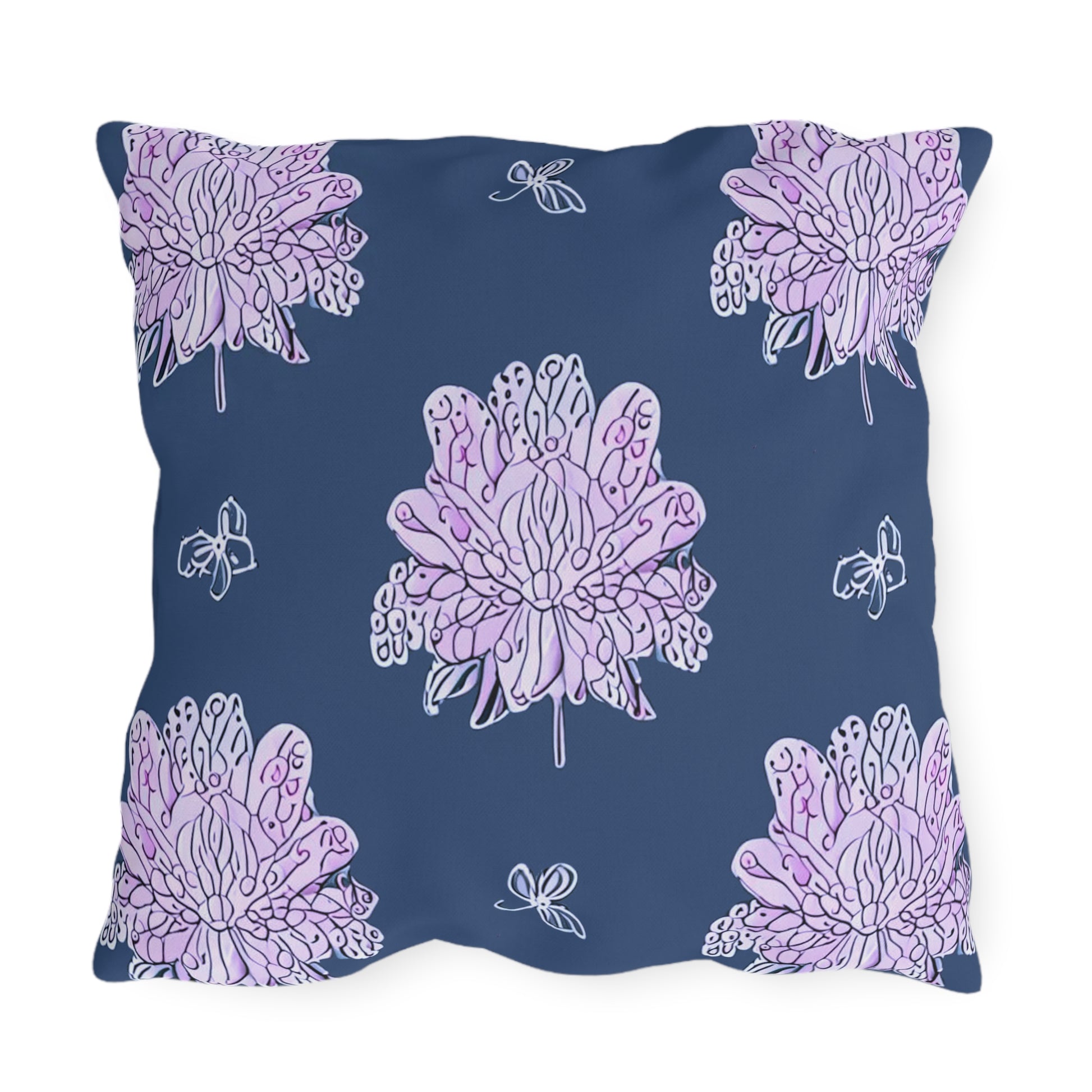 Purple White Floral Butterflies 20" x 20" Outdoor Pillow