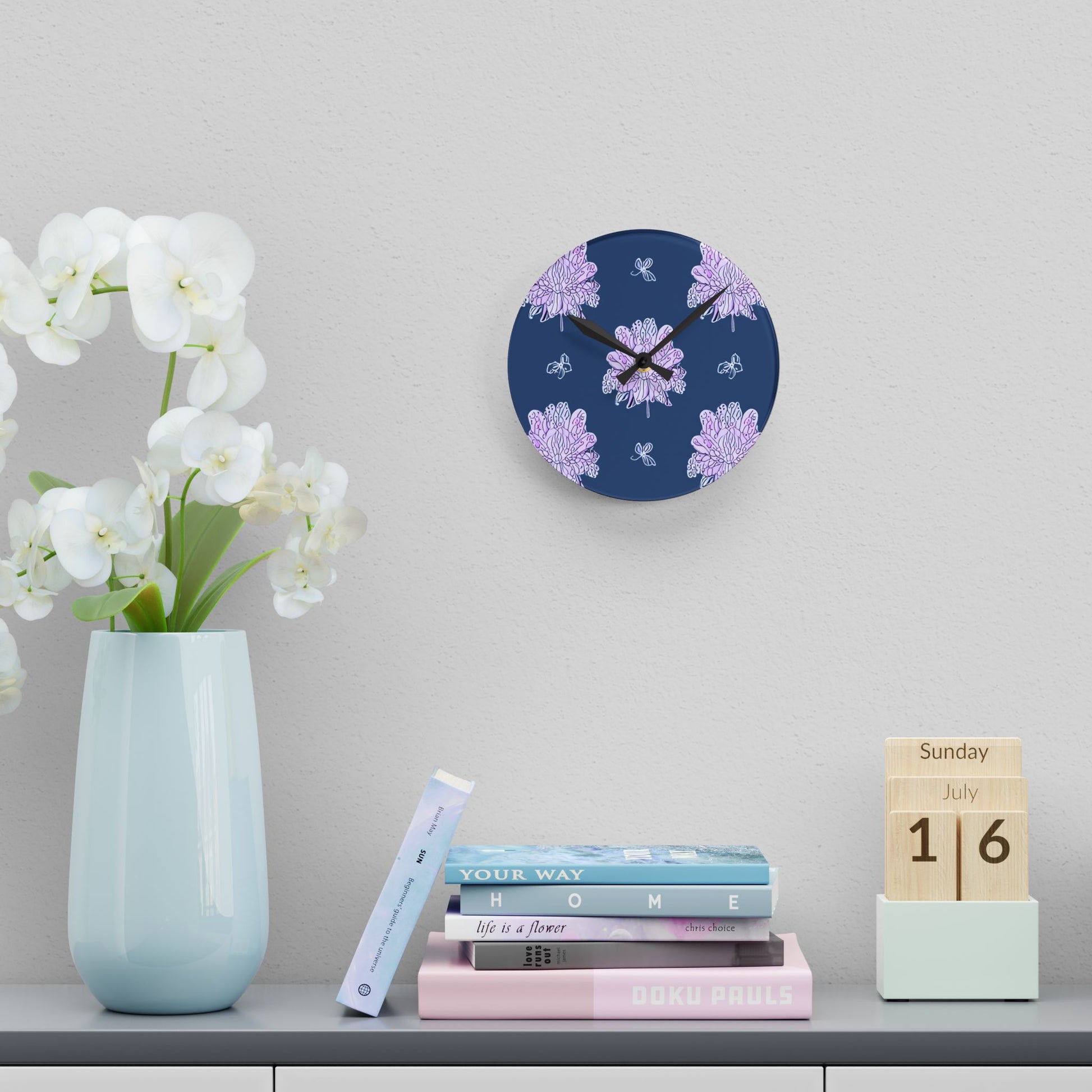 Why settle for a plain clock when yours can double as art? This acrylic wall clock is printed with my original, copyright-protected design and made just for you — no two are exactly alike. The high-gloss finish and crystal-clear acrylic give it a sleek, modern look, while the bold artwork makes it a true conversation starter.