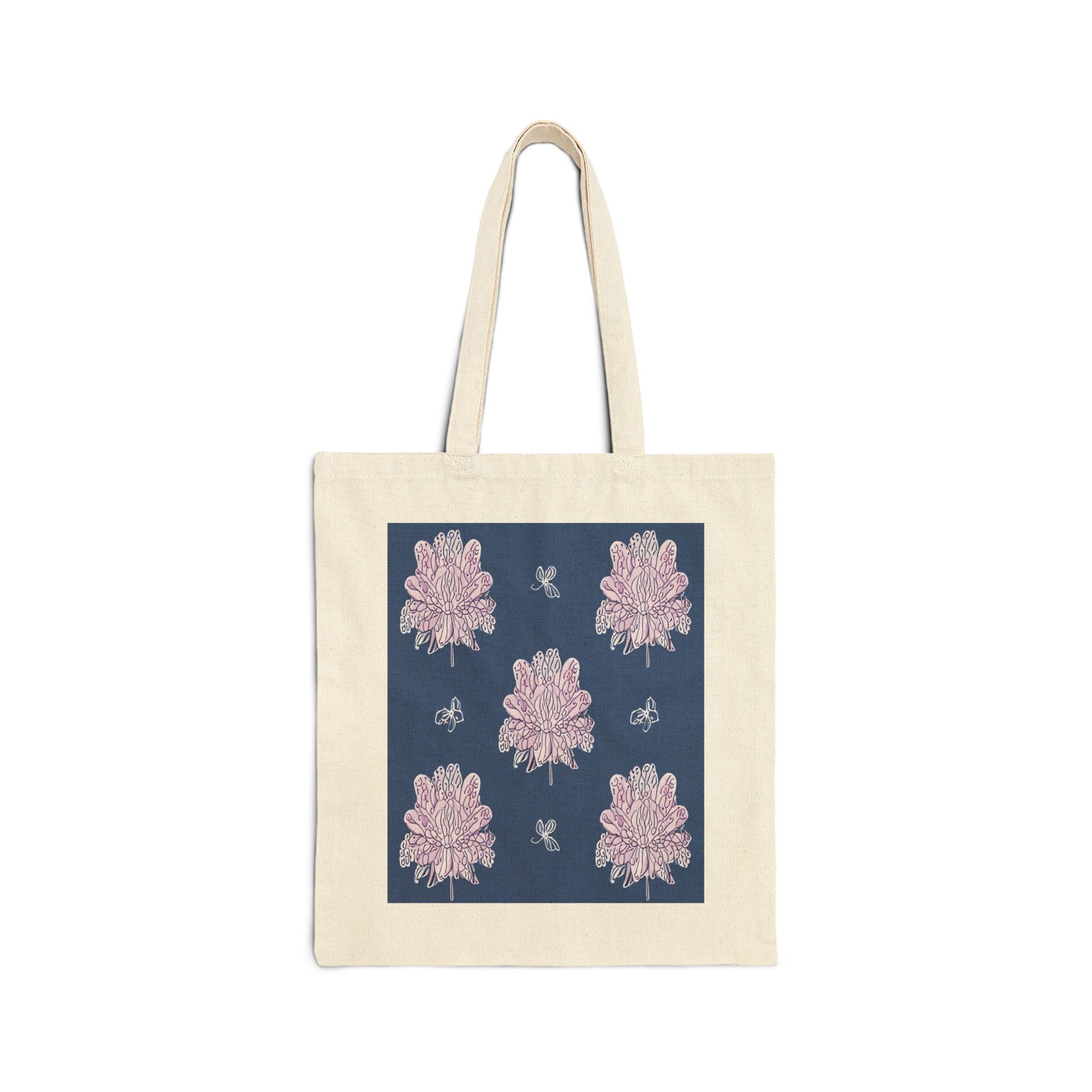 Purple White Floral Butterflies Cotton Canvas Tote Bag