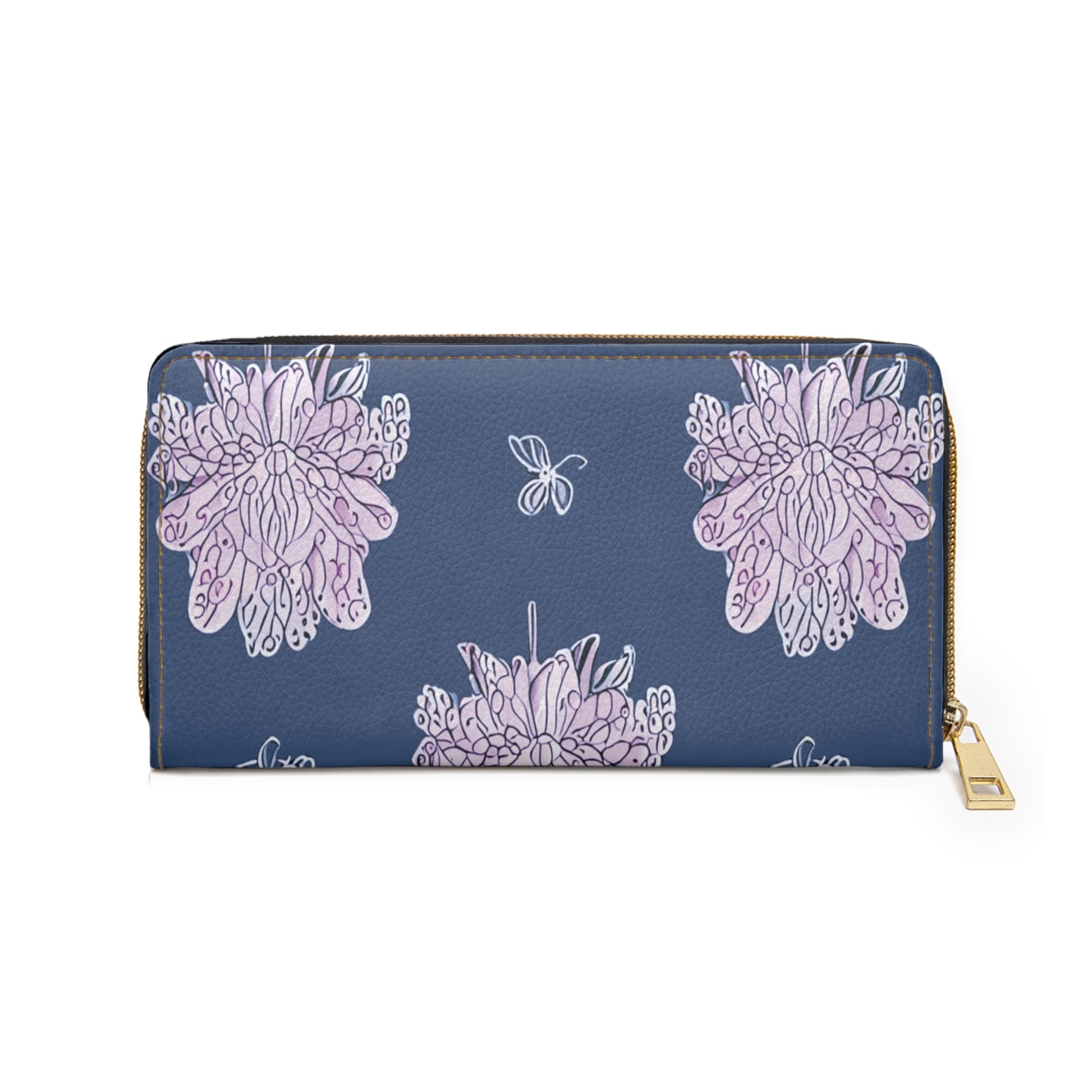 Purple White Floral Butterflies Elegant Abstract Zipper Wallet - Stylish & Functional Accessory for Everyday Use