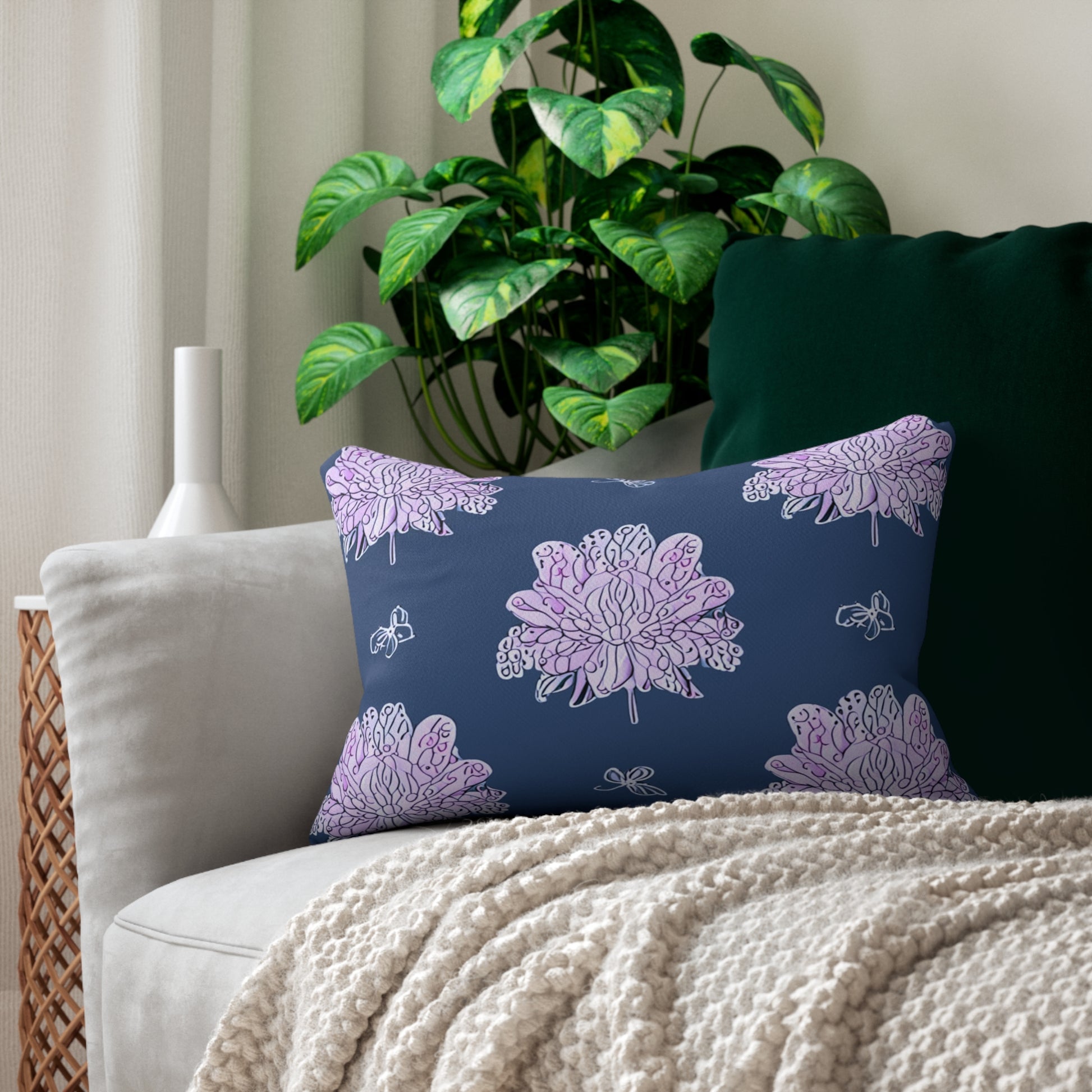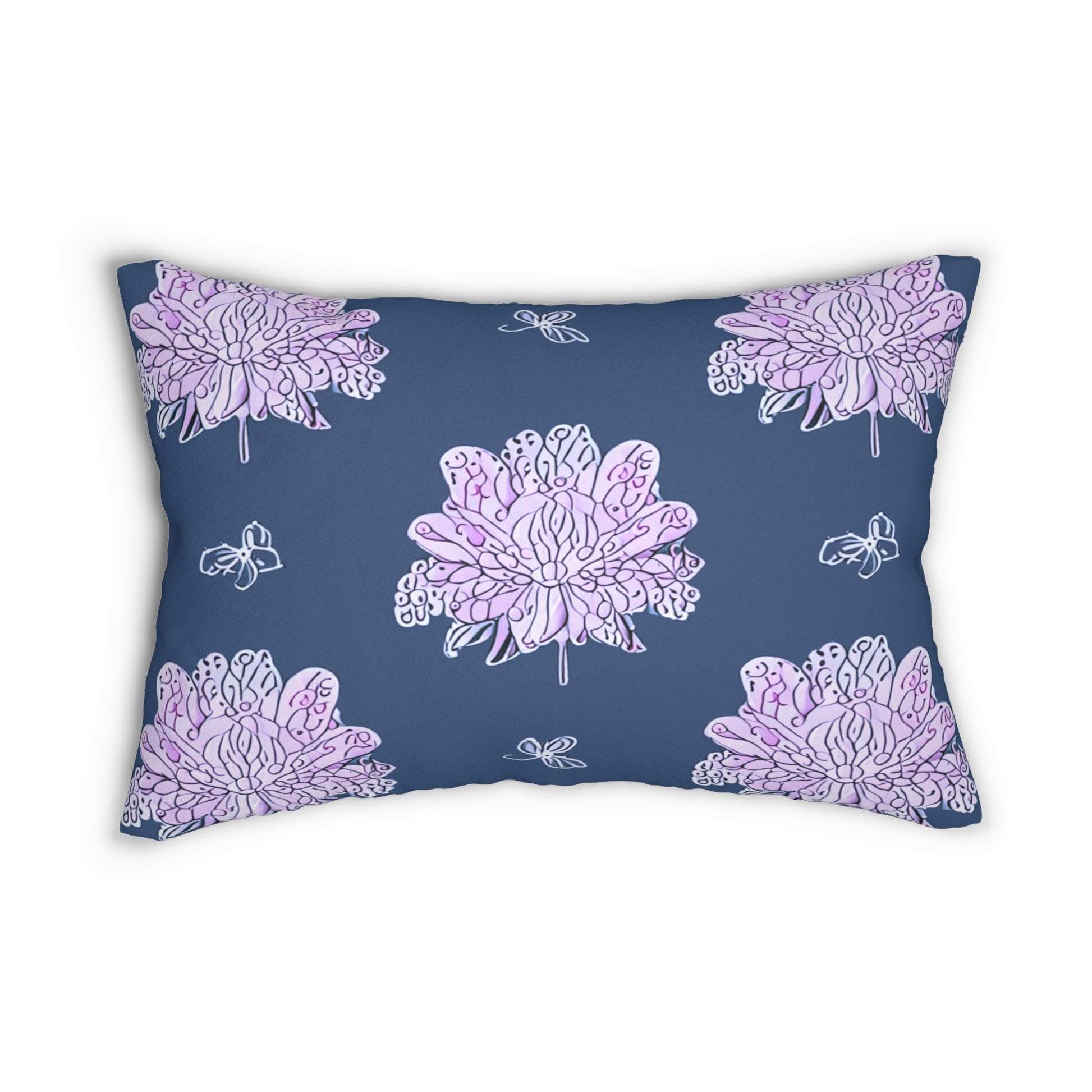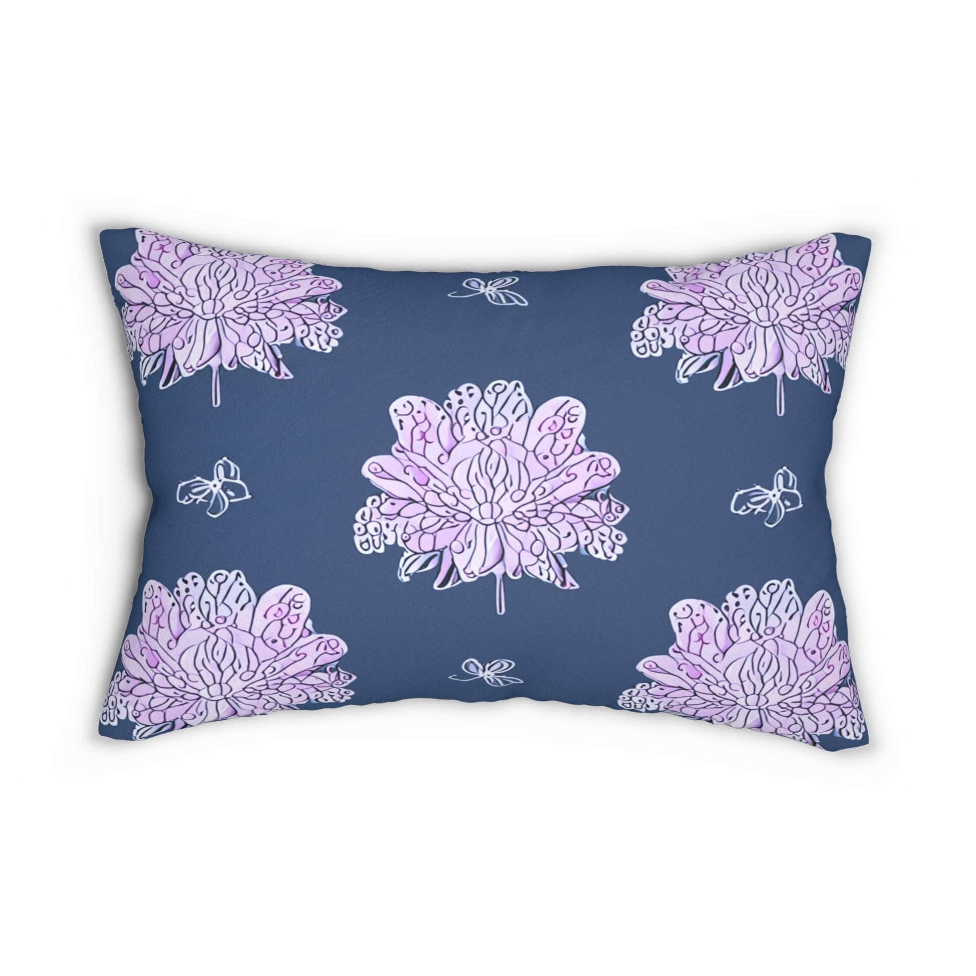 Purple White Floral Butterflies Spun Polyester Lumbar Pillow, 20" x 14"