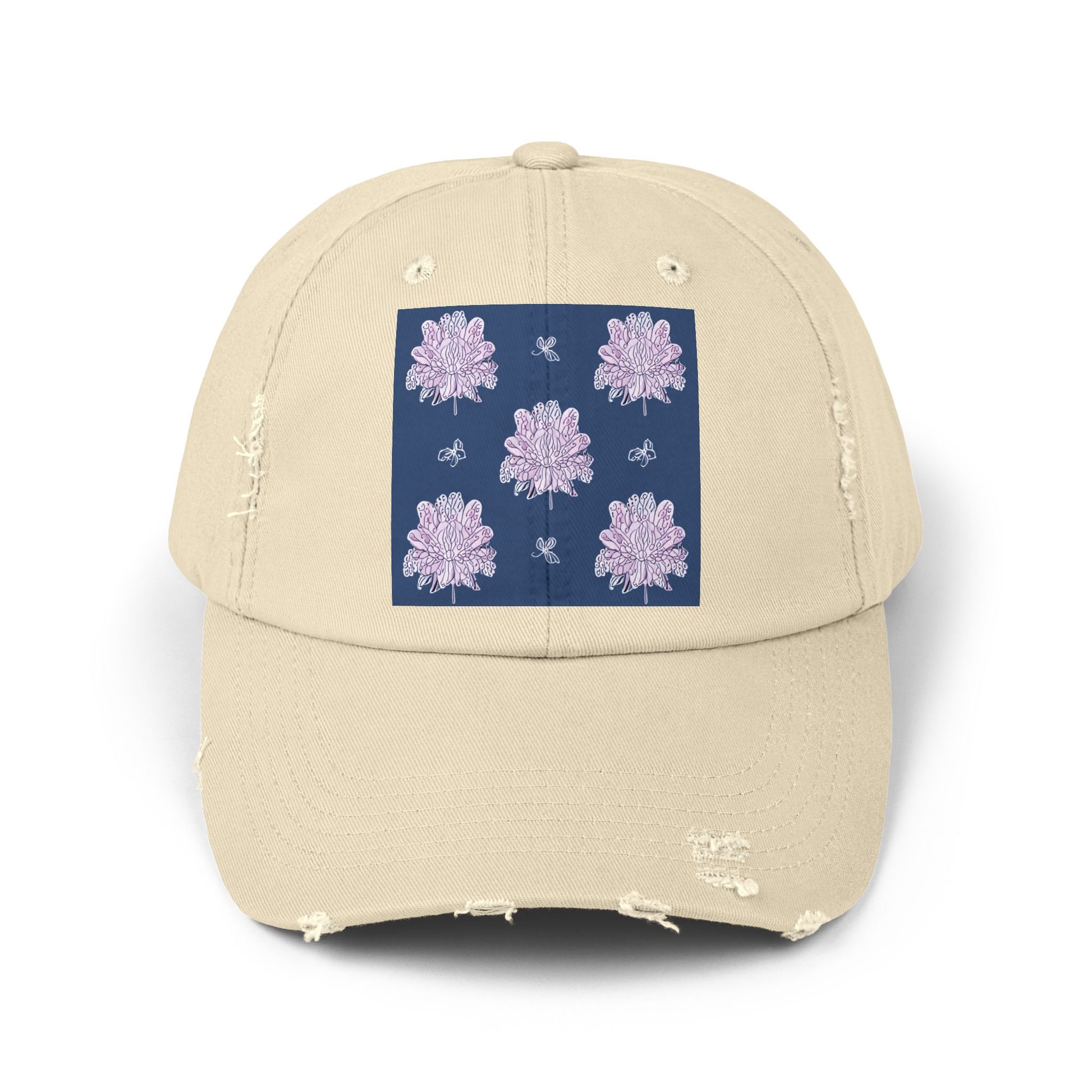 Purple White Floral Butterflies Unisex Distressed Cap