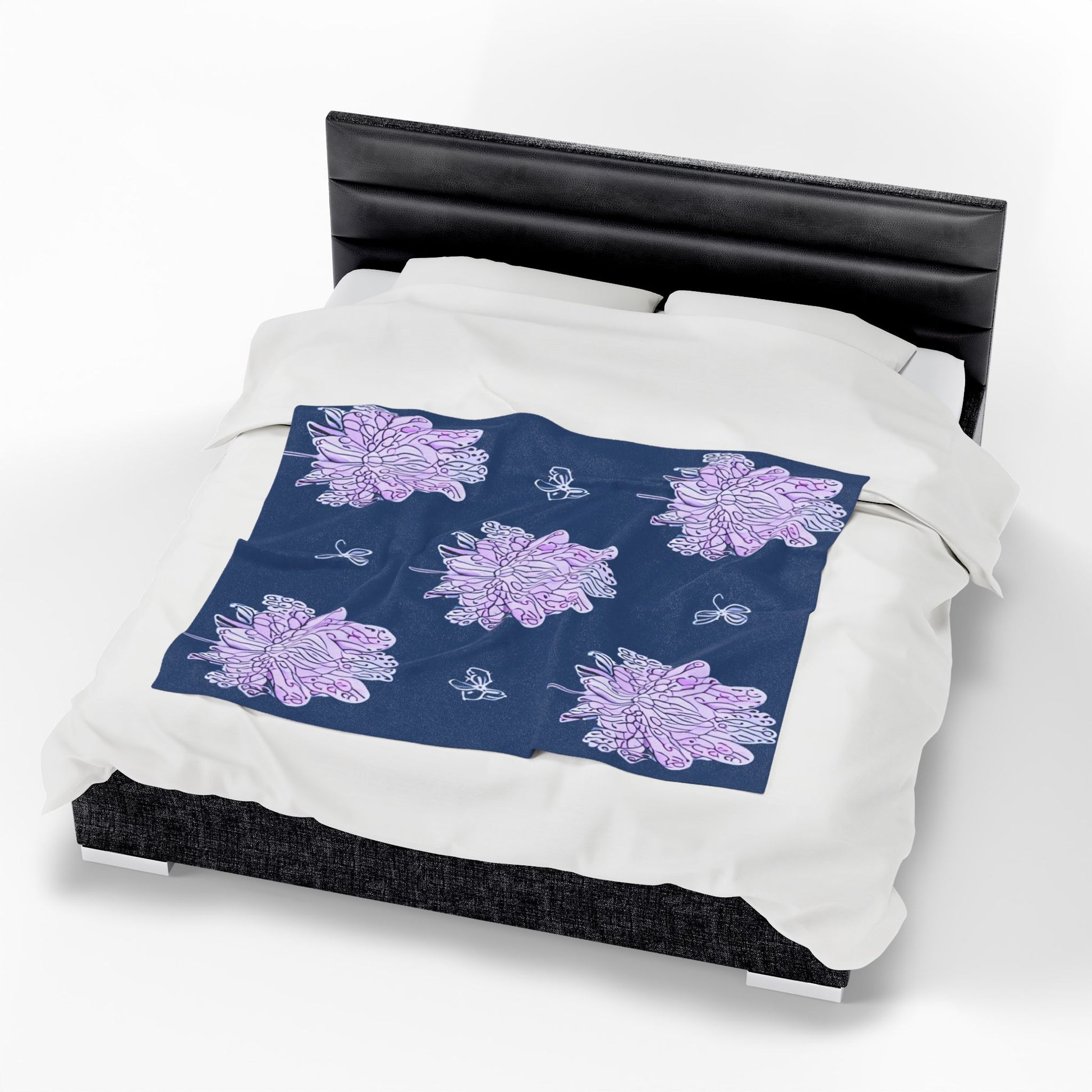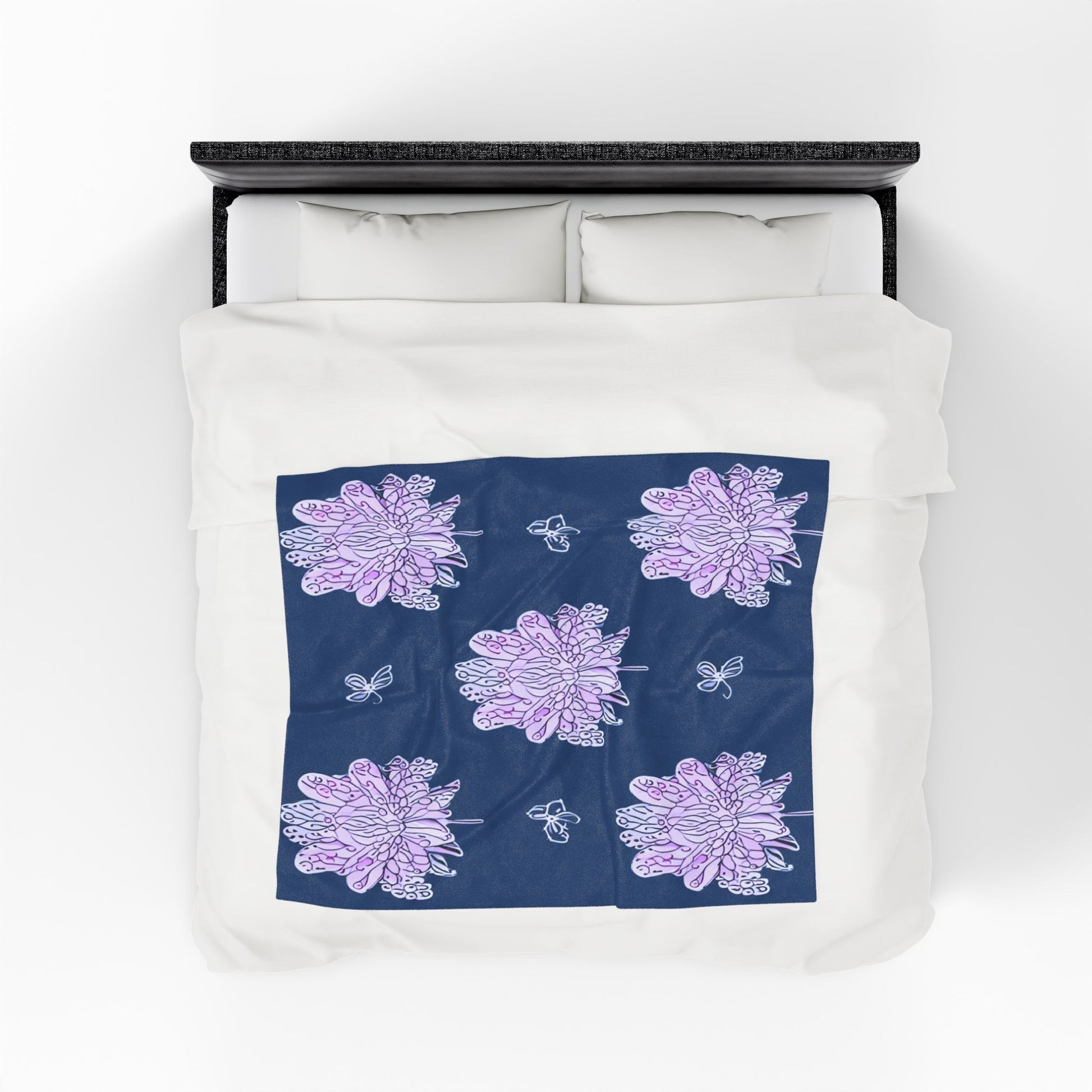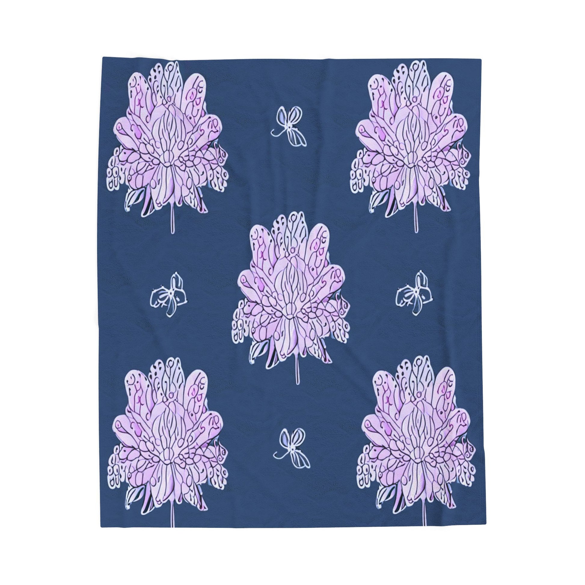 Purple White Floral Butterflies Velveteen Plush Blanket, 50" x 60"