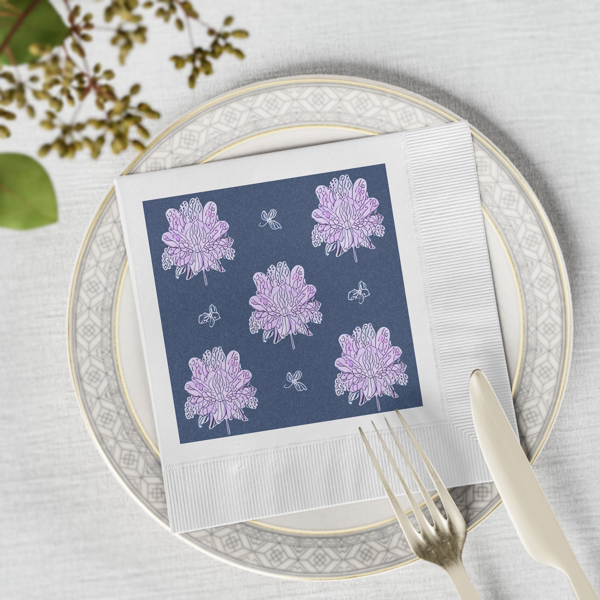 .: NB! The ink used in fulfillment may leave a faint shadow around the design's border, as well as specks on the napkin's edge
